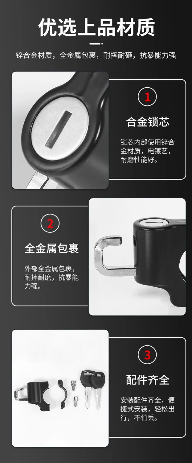 ヘルメットロック、電動バイクの安全と盗難防止、盗難防止ヘルメットフックロック、特殊なオートバイと自転車用の吊り下げロック
