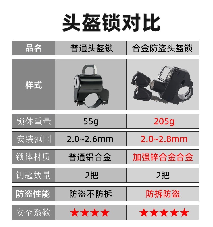 1 セット - アロイキーヘルメットロック [取り付け工具付属]