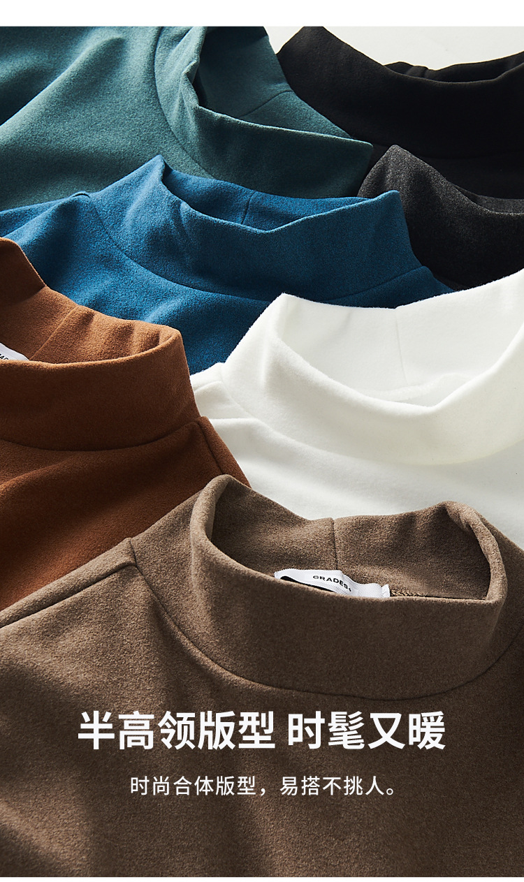 半高襟の底のシャツの男性式のベルベットの中襟の中に上着の男性の長袖のtシャツの底の服の男性の冬を掛けます。