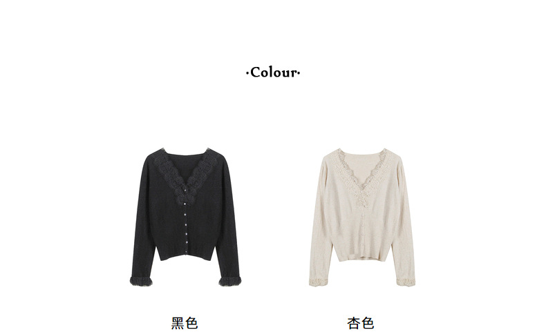 【歌銘】デザイン感小衆レースニットカーディガン女性秋新作vネック修身気質上着W797H