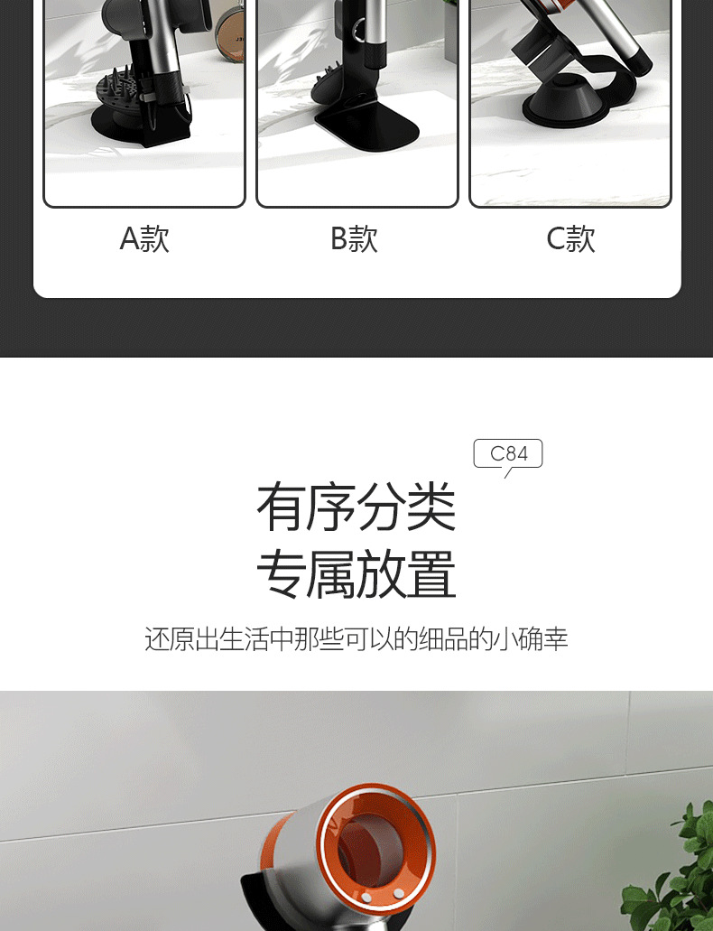 ダイソンヘアドライヤーホルダー、縦型穴あけ不要、理髪店用ダイソン収納ラック、ヘアドライヤー卓上収納ラック、多機能収納ラック