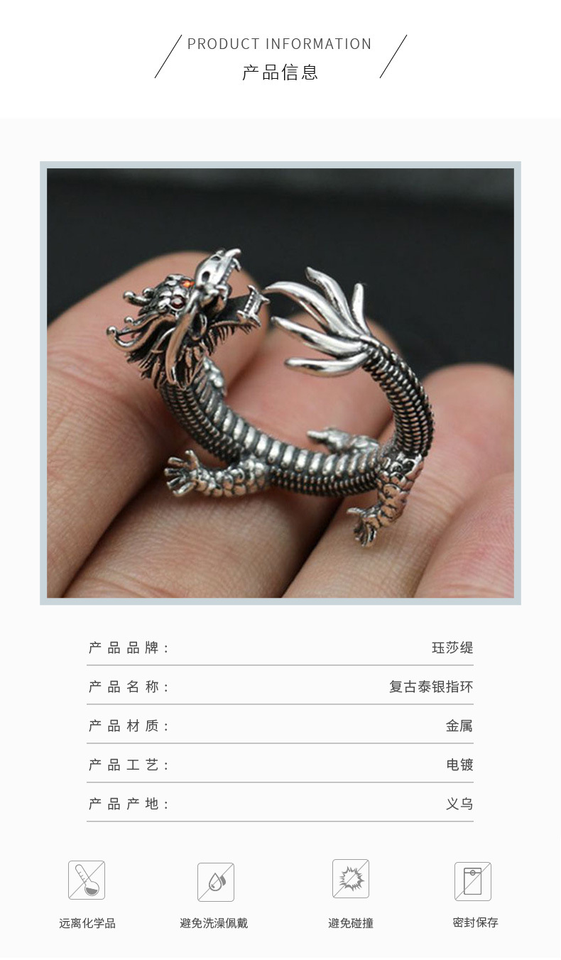 青龍蛇口リング,蛇口2,横暴なドラゴン 3,ダロン,飛龍の赤い目,飛龍の青い目,黄金,古代の銀