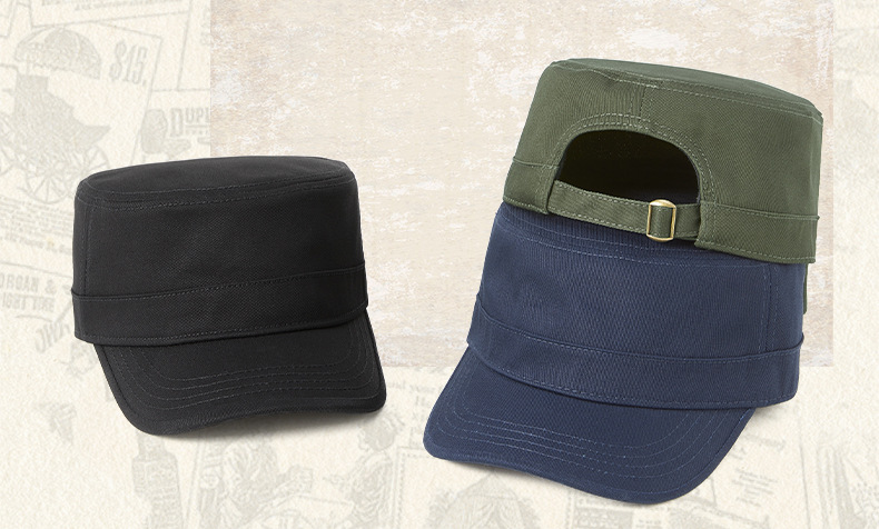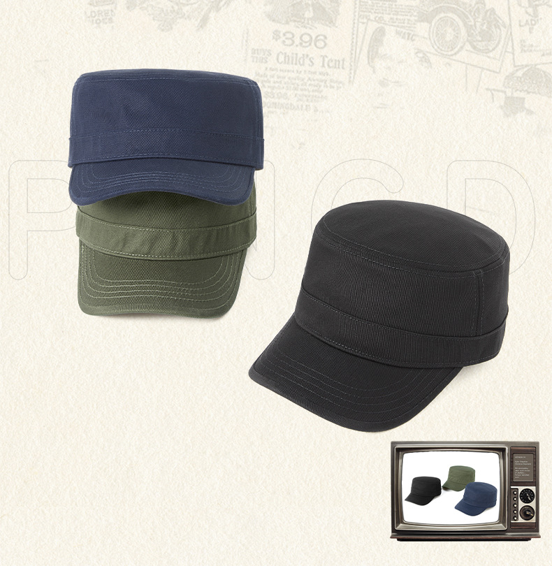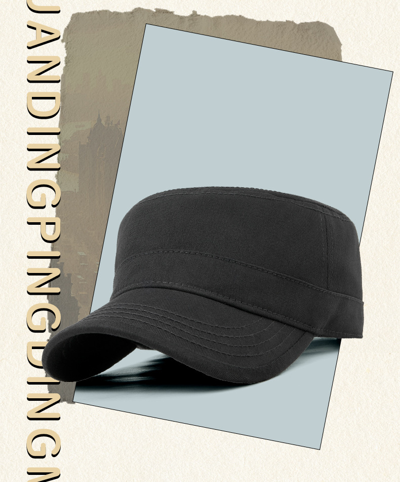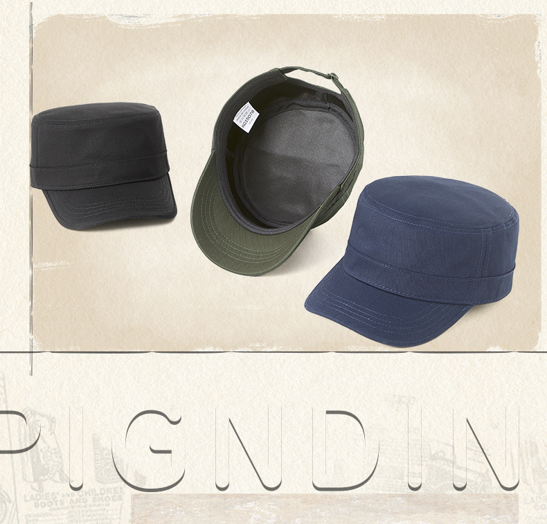 無地の純綿フラットトップハット、メンズ、大きいサイズ、韓国風ミリタリーハット、中高年向け多用途帽子、おしゃれなアウトドア日よけ帽子