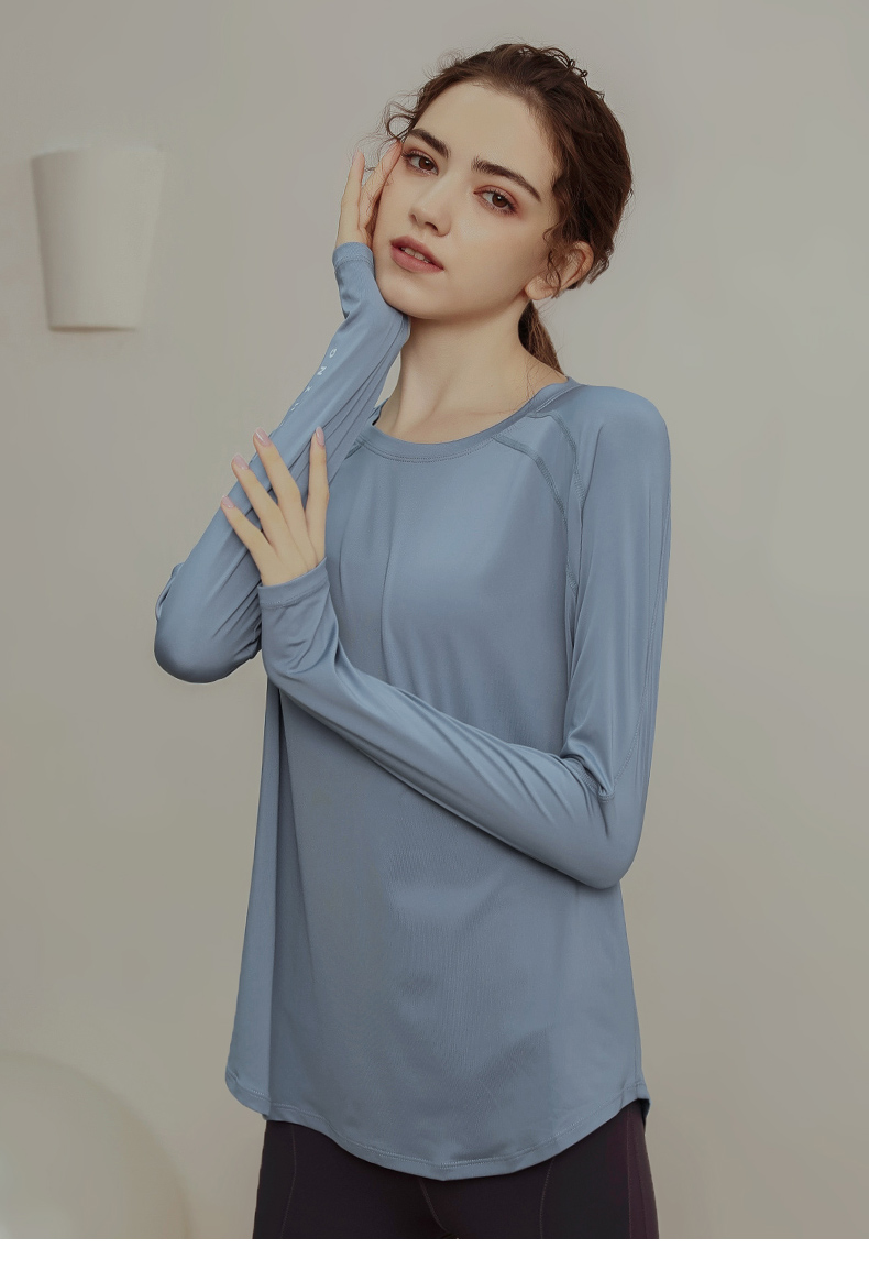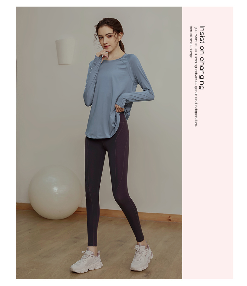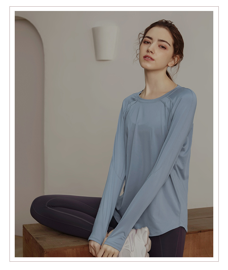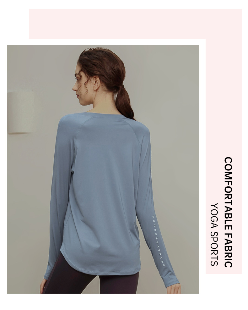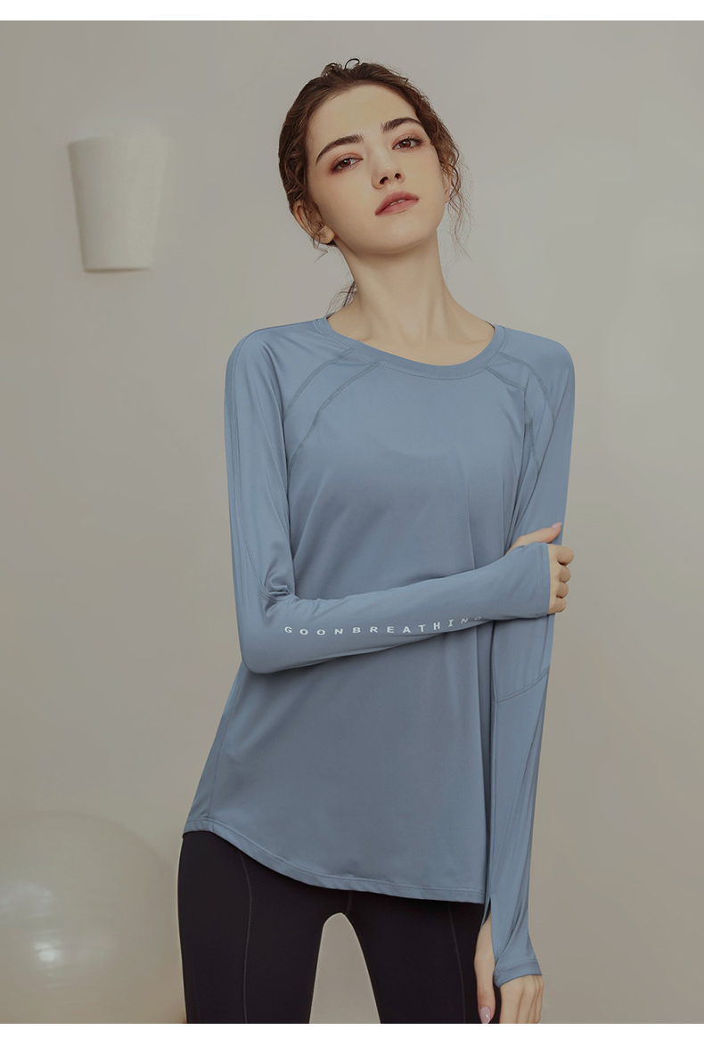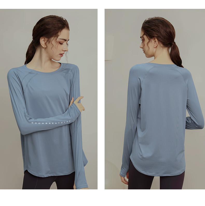 ゆったりとした速乾運動上着の女性長袖tシャツヨガ服の通気性のあるランニングトレーニング服は痩せています。
