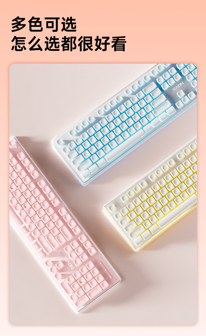 白暖色【ワイヤレス黄色キーボード】【充電可能-二倍大電力】 + ワイヤレスマウス【受信機付き】