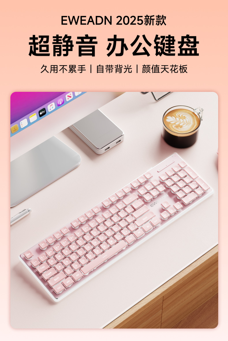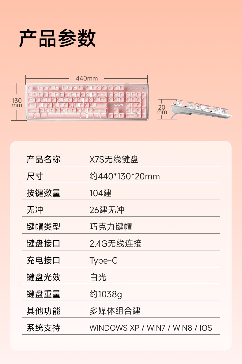 桜花粉【ワイヤレス白色キーボード】【充電可能-二倍大電力】 + ワイヤレスマウス【受信機付き】