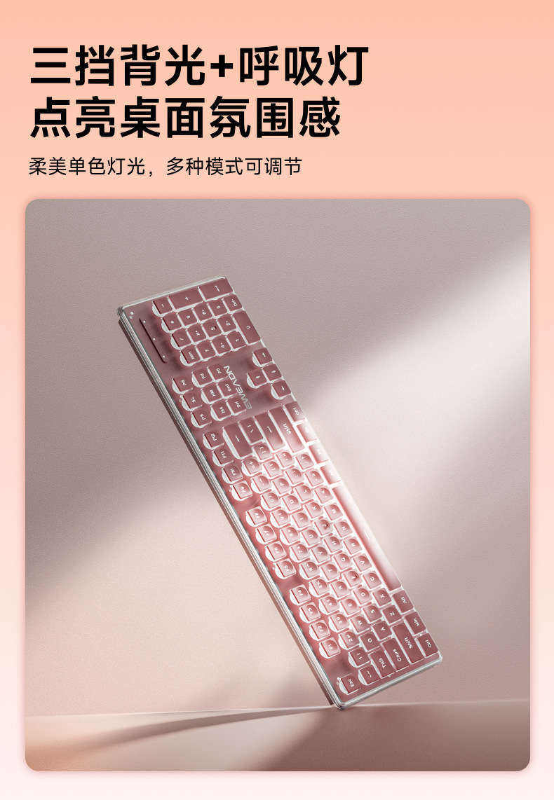 Haoyue Silver [ワイヤレスイエローライトキーボード] [充電式 - 2倍の電力]