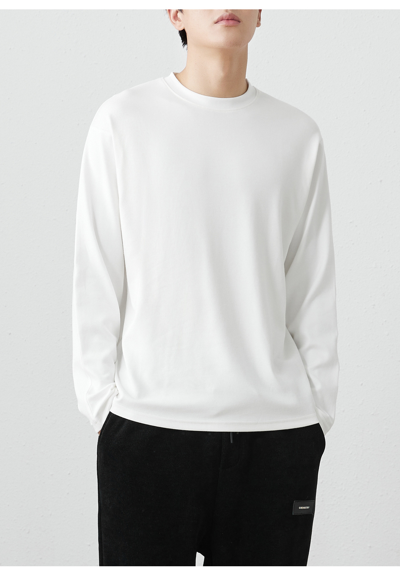 310gコーマ綿肌に優しい白厚手純綿長袖Tシャツメンズ2025春秋無地インナー重ね着シャツ