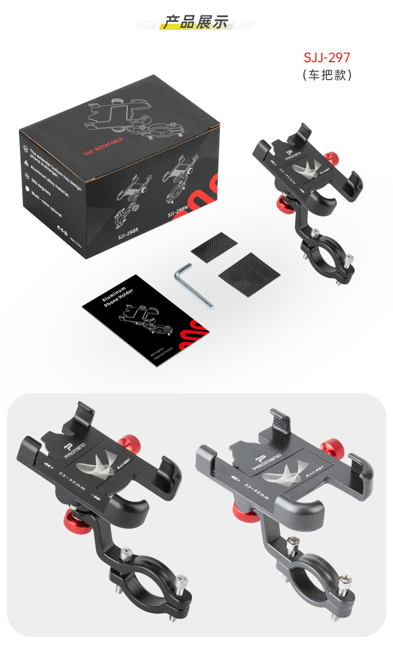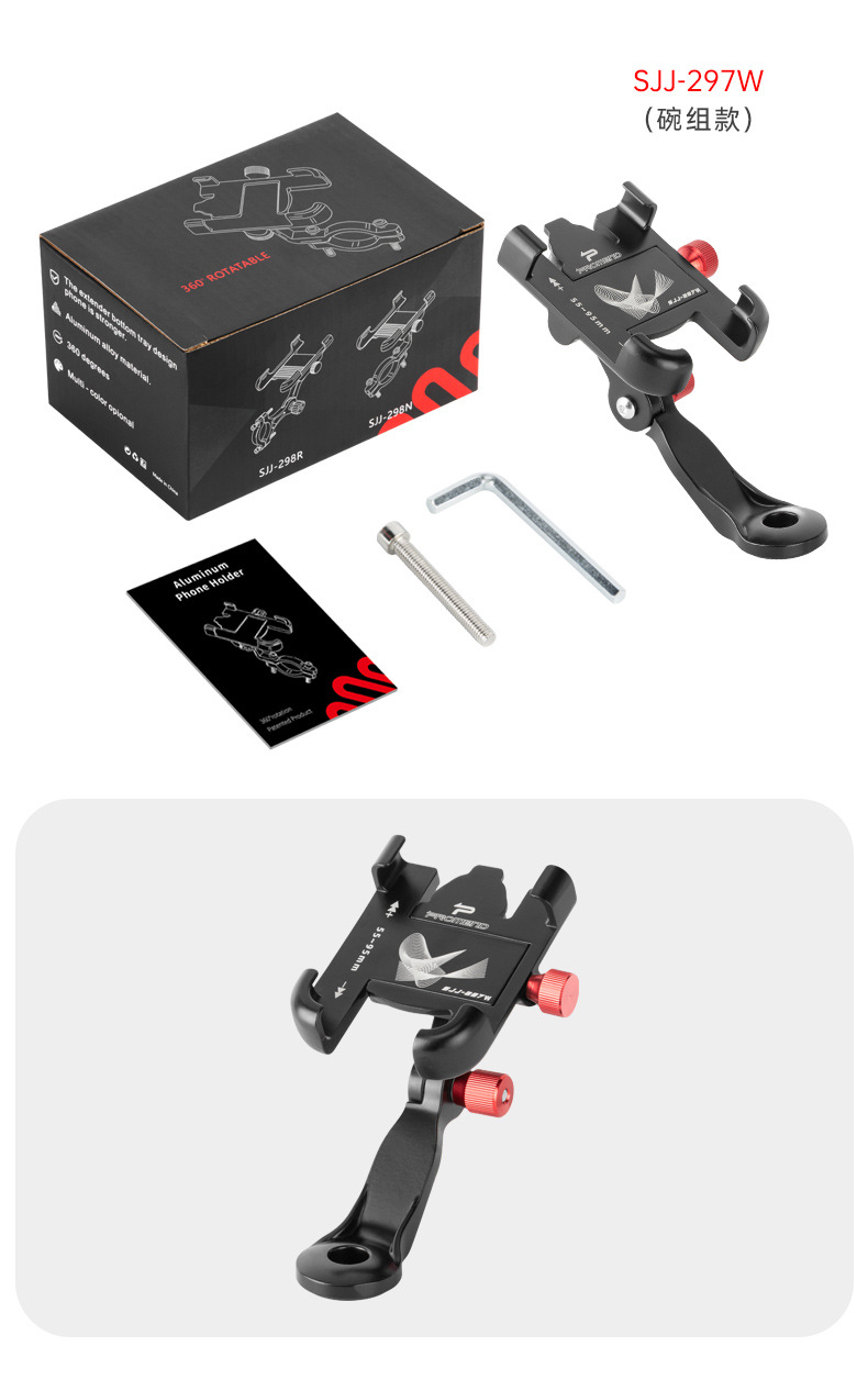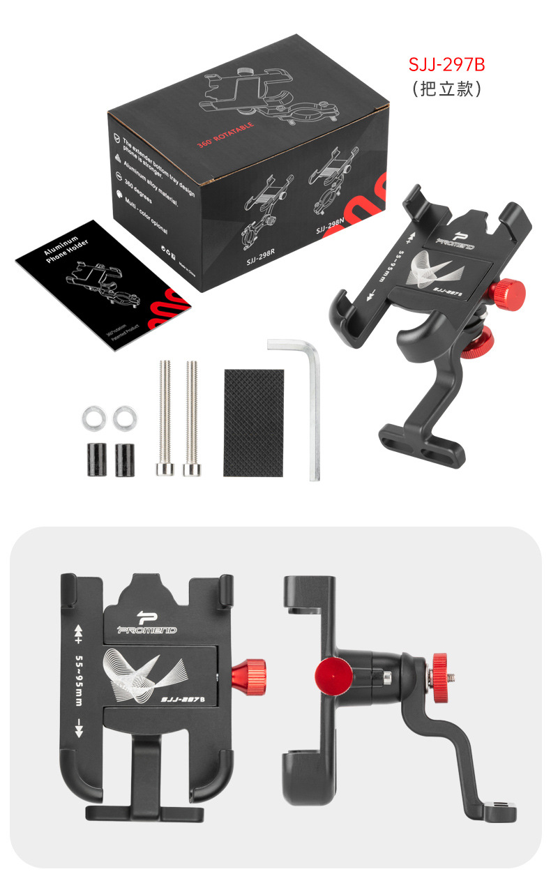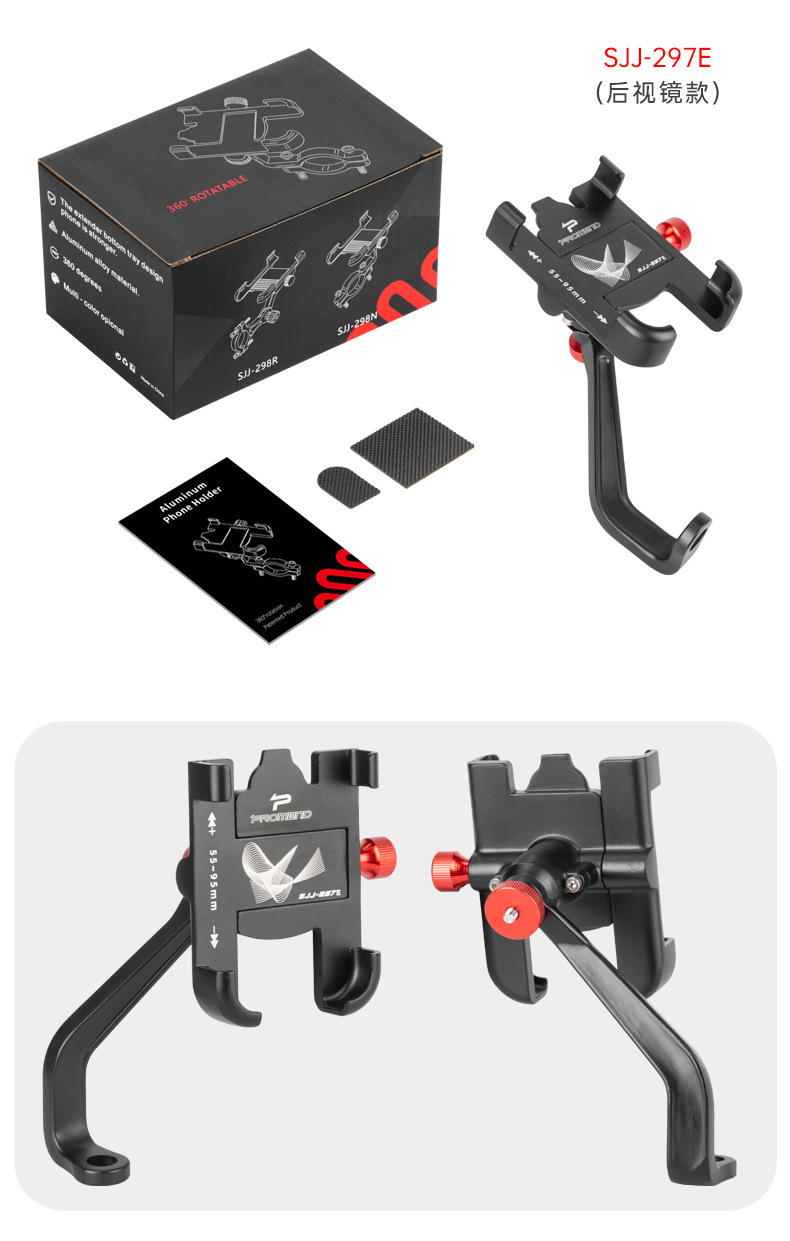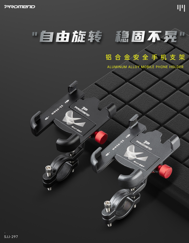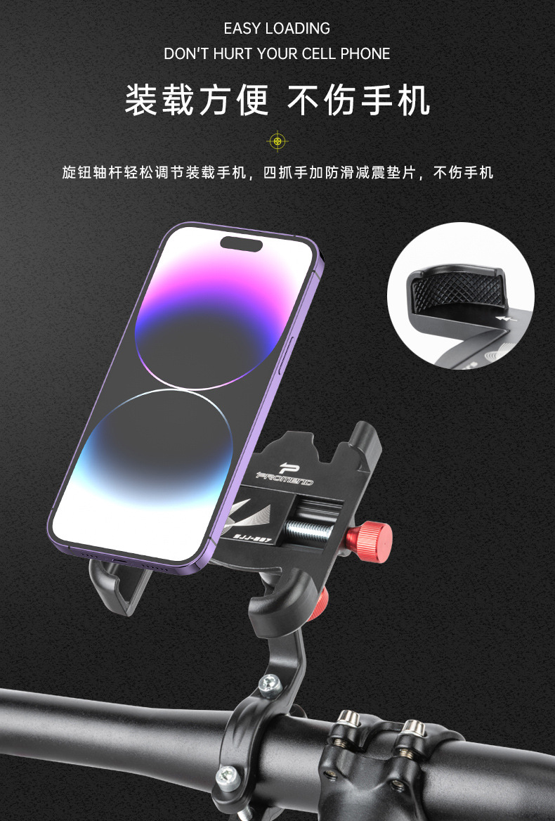 Promend電気自動車自転車携帯電話ナビゲーションホルダーアルミ合金強力ロック四爪回転携帯電話ホルダー