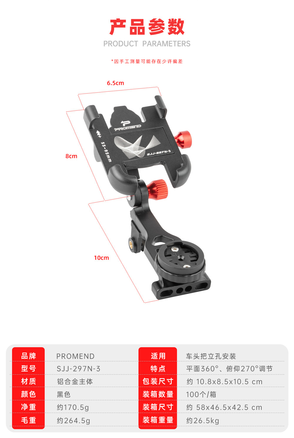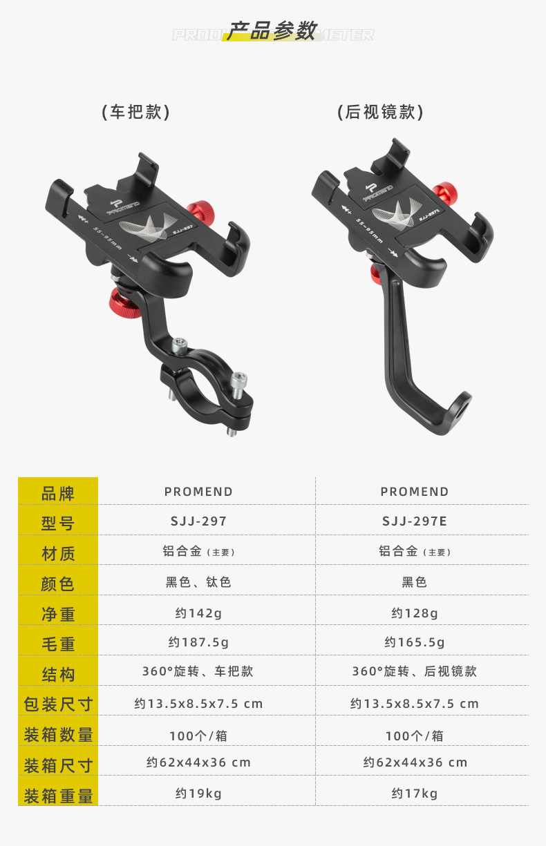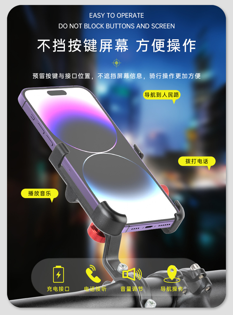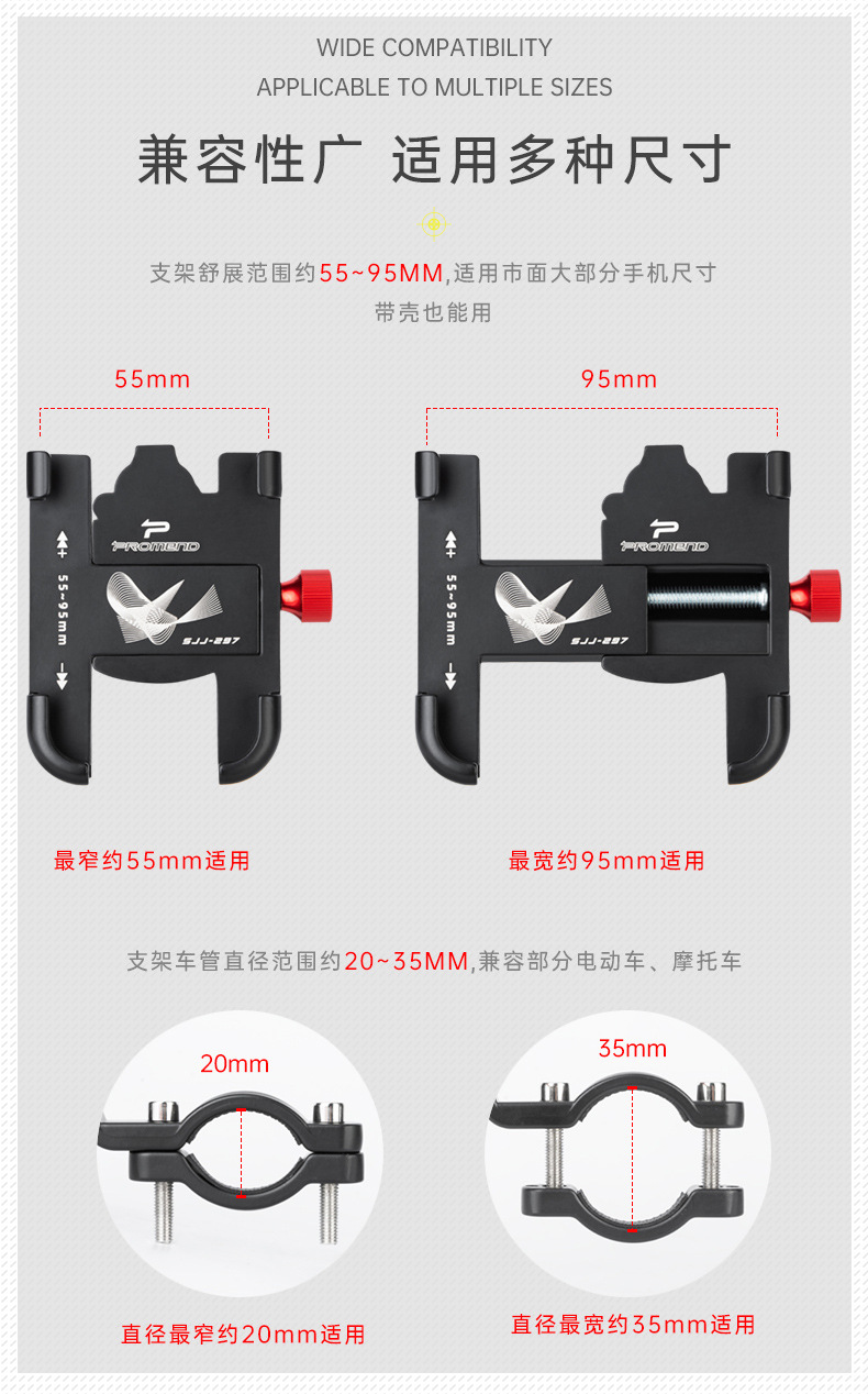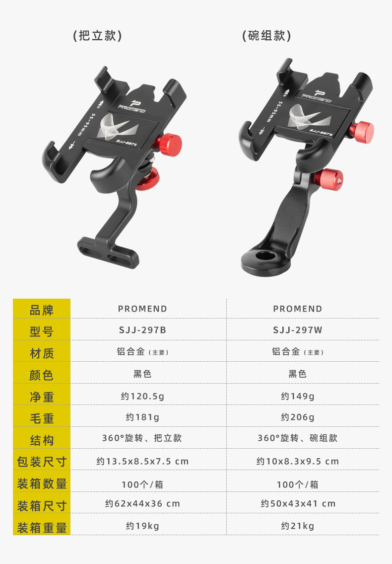 Promend電気自動車自転車携帯電話ナビゲーションホルダーアルミ合金強力ロック四爪回転携帯電話ホルダー
