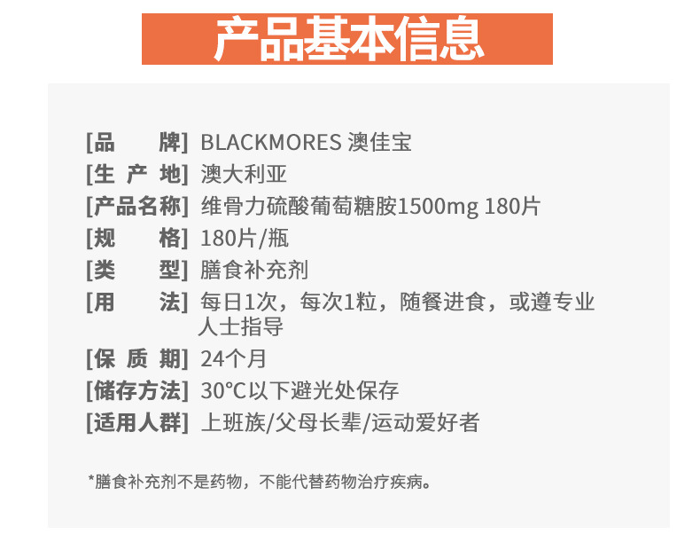 オーストラリアブラック-moresオーストラリア佳-宝維骨力関節霊アンモニア軟骨素ブドウ糖180粒中老