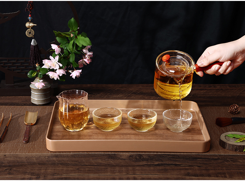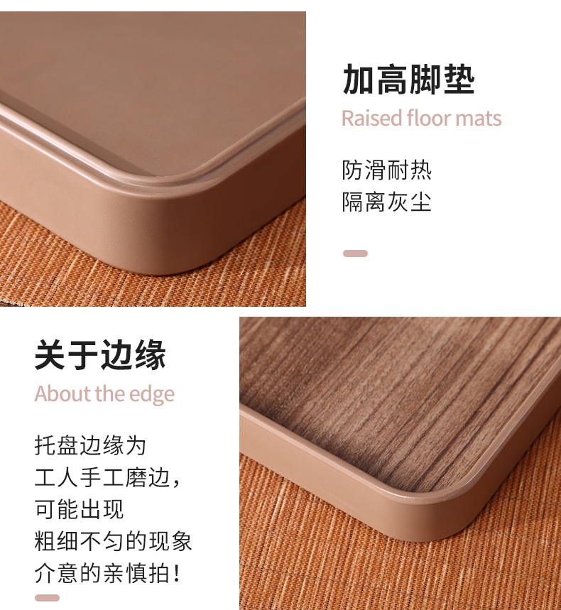 長方形チーク木目トレイ中国風のリビングルーム家庭用トレイメラミン水カップ日本の深皿プラスチックティートレイ卸売