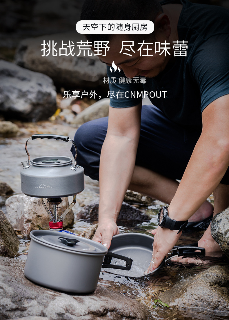 セット鍋屋外鍋調理器具携帯セット野外キャンプ水筒キャンプフライパン野炊飯装備用品大全
