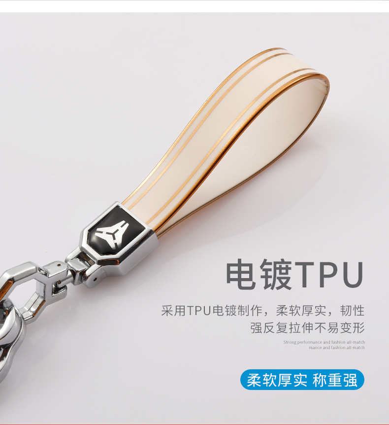 新しいtpuメッキの金の縁のキーホルダーの自動車のキーホルダーのペンダントの高品質の金属の馬蹄の掛け縄の卸売り