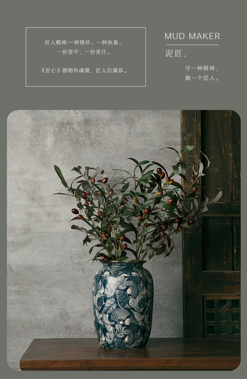 景徳鎮の新しい中国式の復古の文芸の陶磁器の花瓶は新鮮な乾いた花のホテルの民宿の台の上の装飾品の置物を挿し込みます。