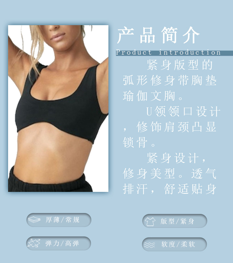 欧米のファッションの夏のアーチ形のヨガ服の上着の女性の修身運動のランニングベルトの胸のクッションのブラジャーの代行