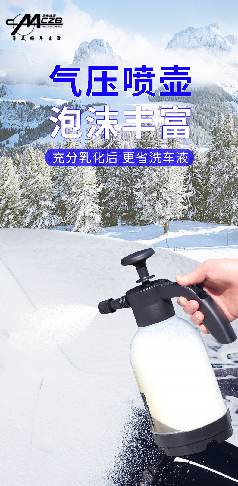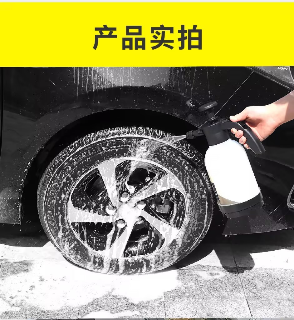 注:泡沫壶壶体有刻度线,加水不能超1.5L,洗车液和水比列1:50,气泡效果更佳。