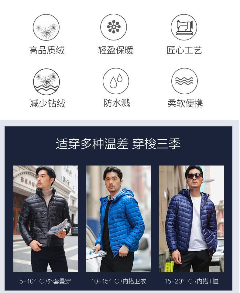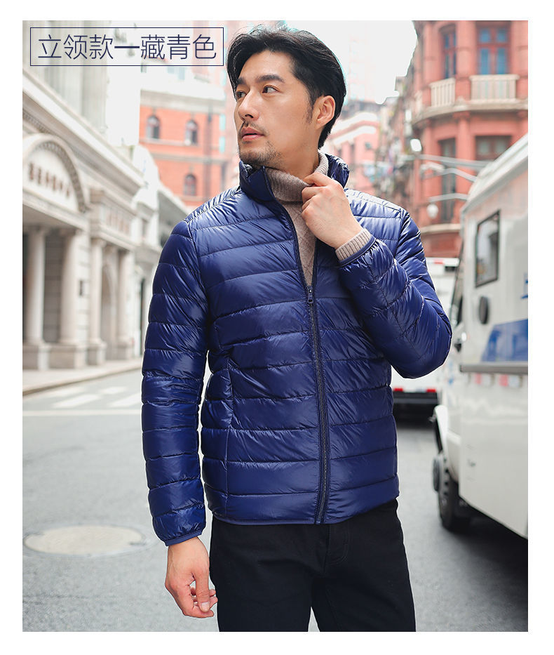 冬の秋冬のダウンジャケットの男性のショートタイプの軽薄なビジネスファッションのファッションは帽子と一緒に白いアヒルの毛のメンズコートを厚くします。