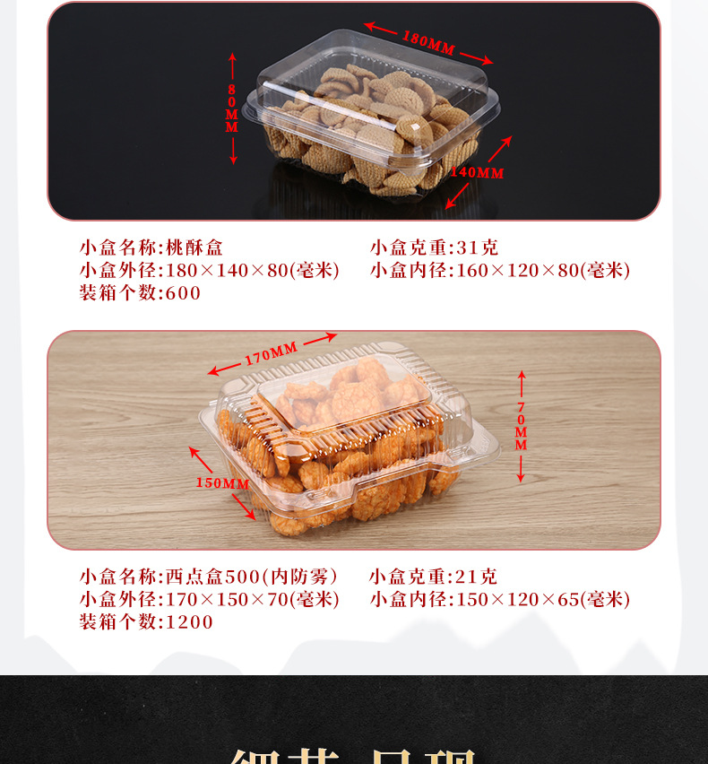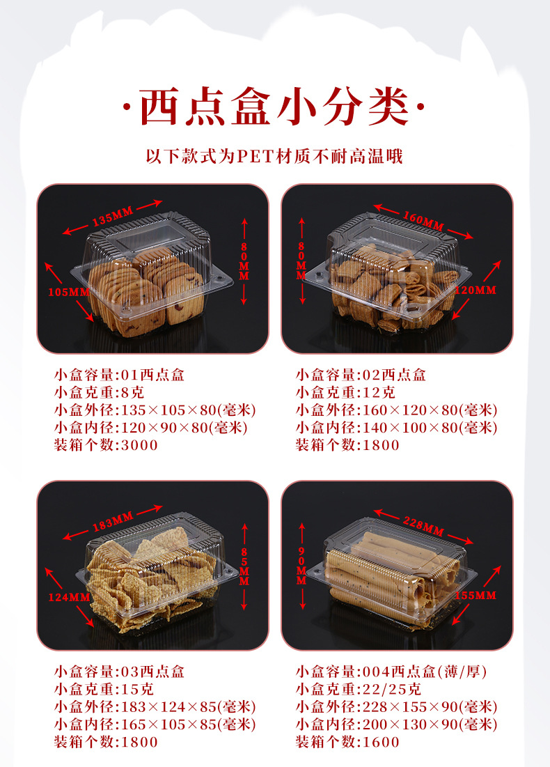 使い捨て洋菓子箱、パン・ケーキ包装箱、PET透明菓子・ビスケット包装、桃餅・乾物用プラスチック箱