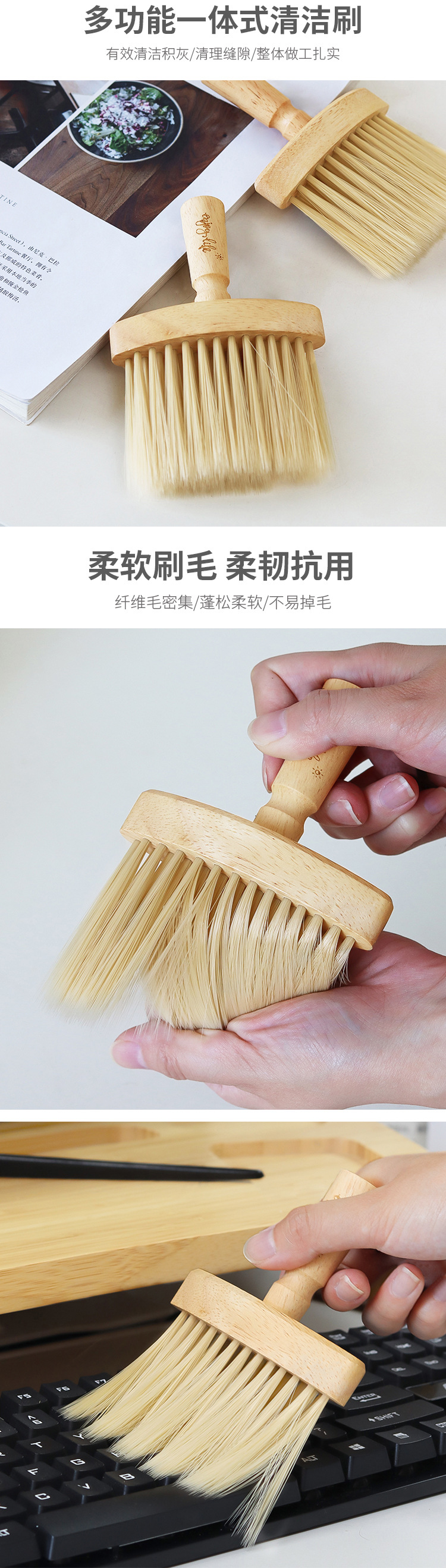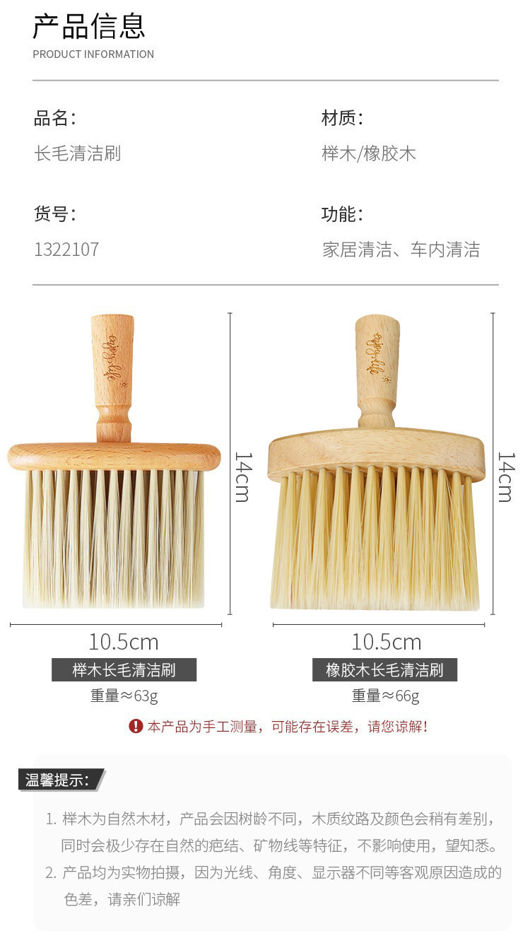 橡胶木长毛清洁刷:单只68g,装箱规格300个/箱,箱规:55*38*38cm,箱重19.2kg