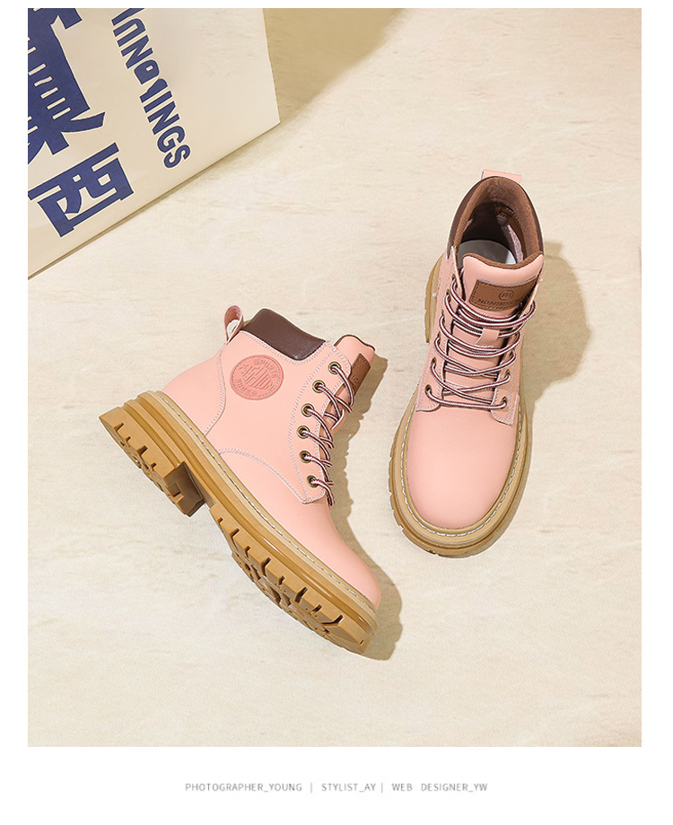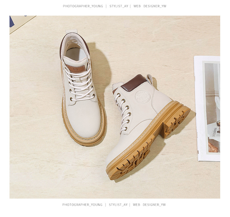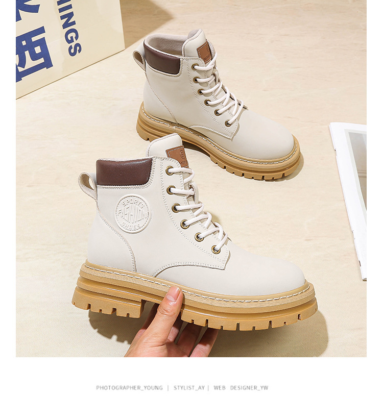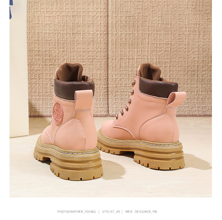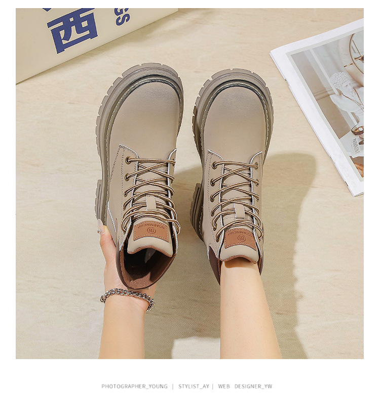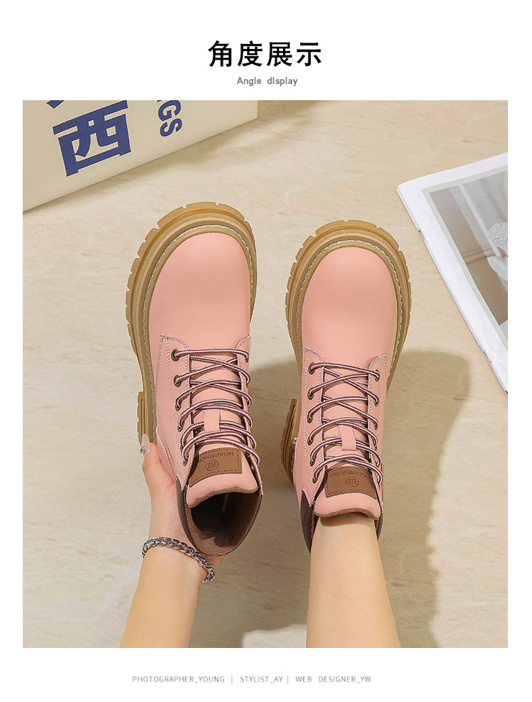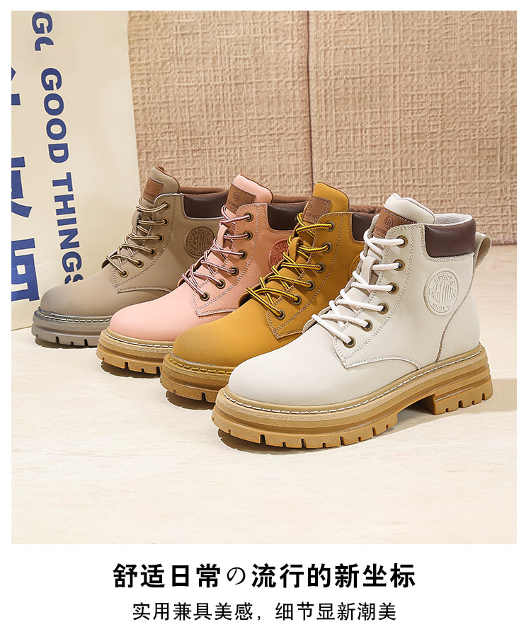 本革ルバーブブーツ女性のための 2025 新しいベルベット暖かいショートブーツ厚い底インナー高揚レトロ英国スタイルマーティンブーツ