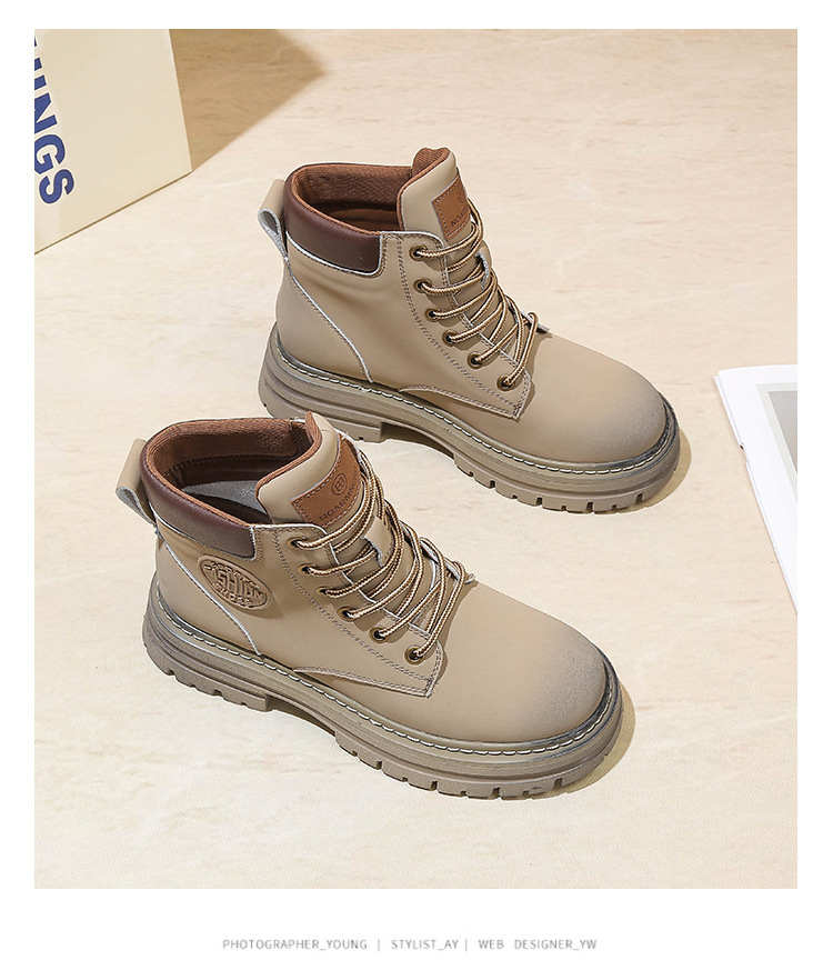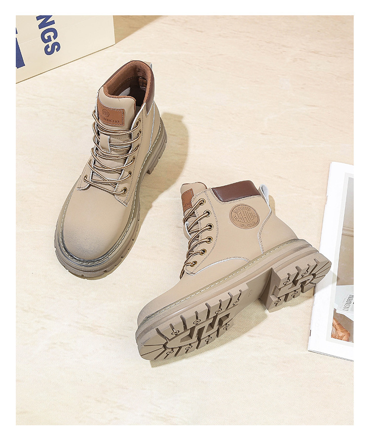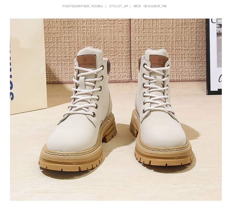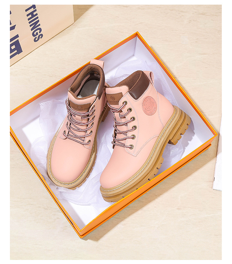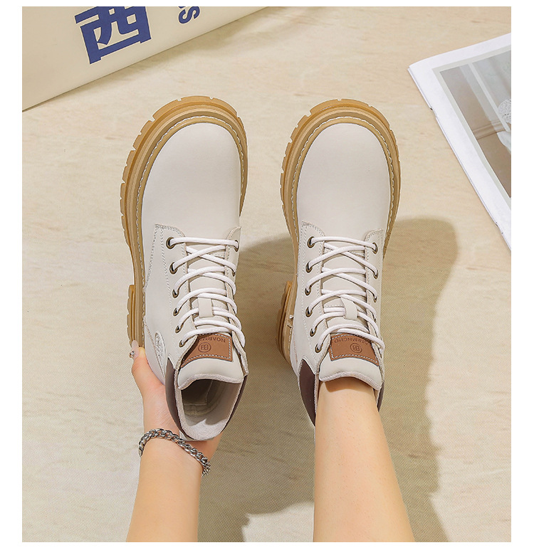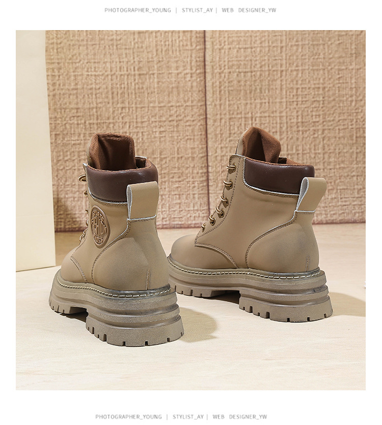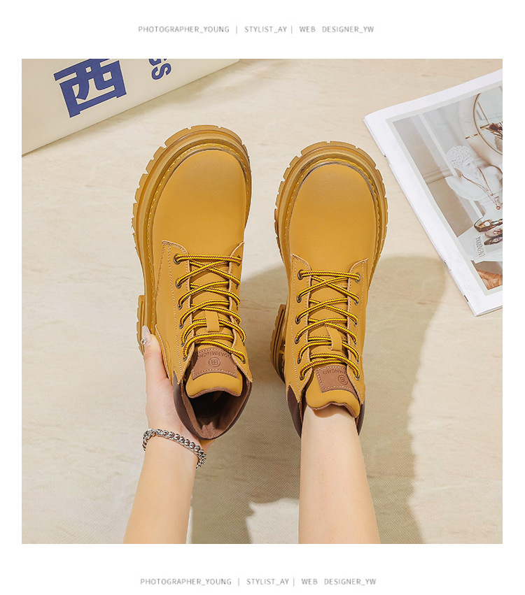 本革ルバーブブーツ女性のための 2025 新しいベルベット暖かいショートブーツ厚い底インナー高揚レトロ英国スタイルマーティンブーツ