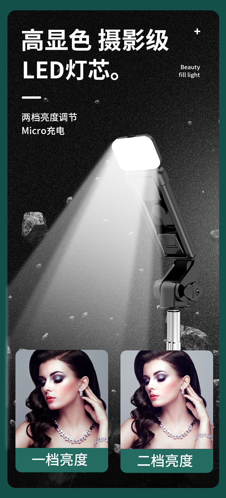 爆型bluetooth携帯電話自撮り棒多機能生放送写真撮影補光折り畳み一体式三脚携帯電話スタンド