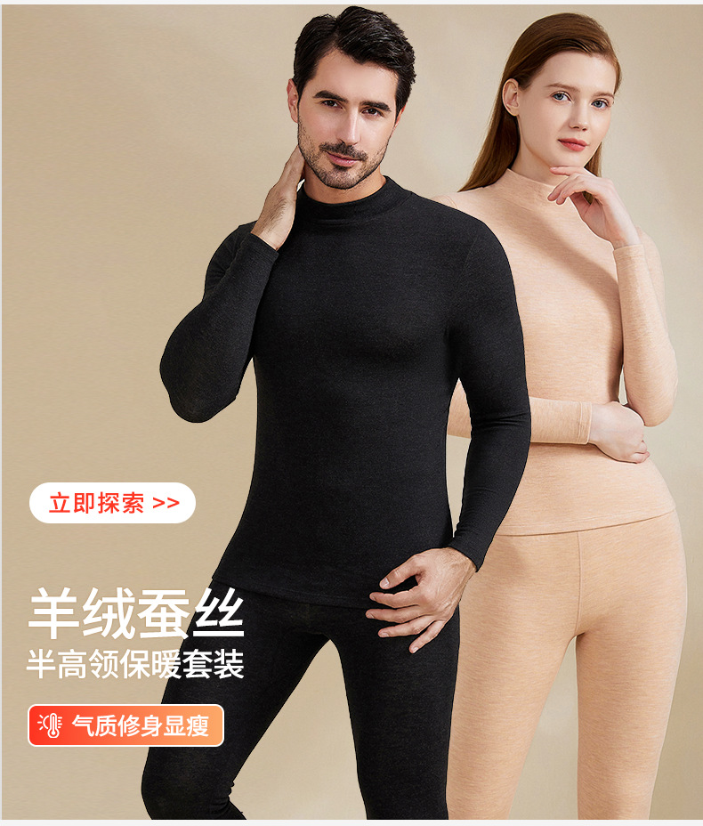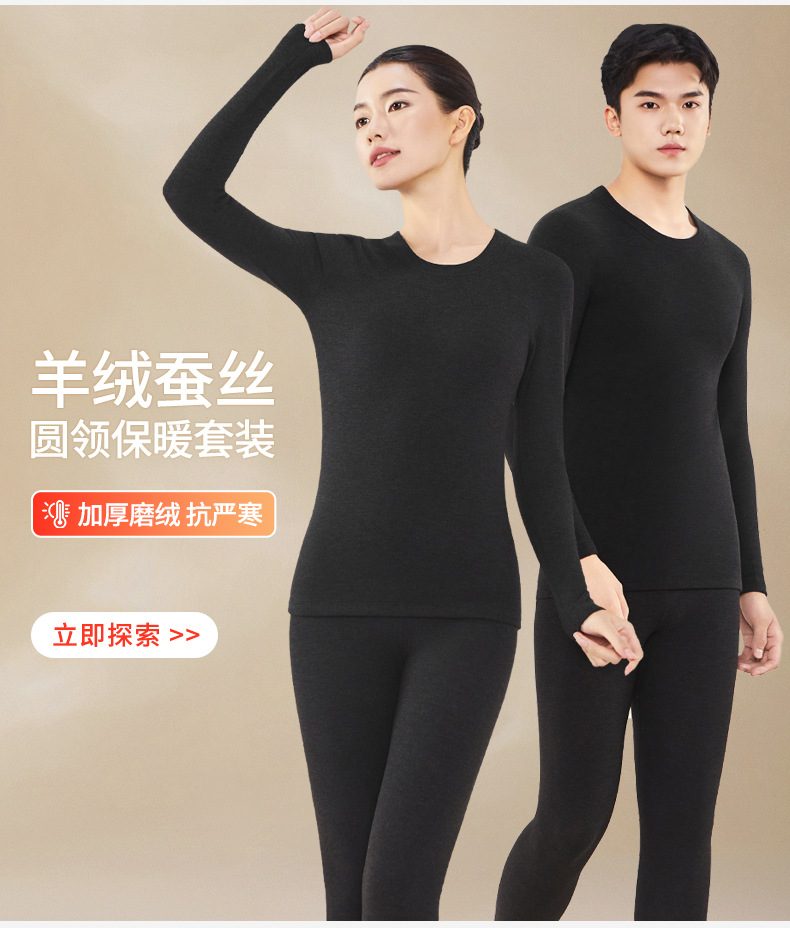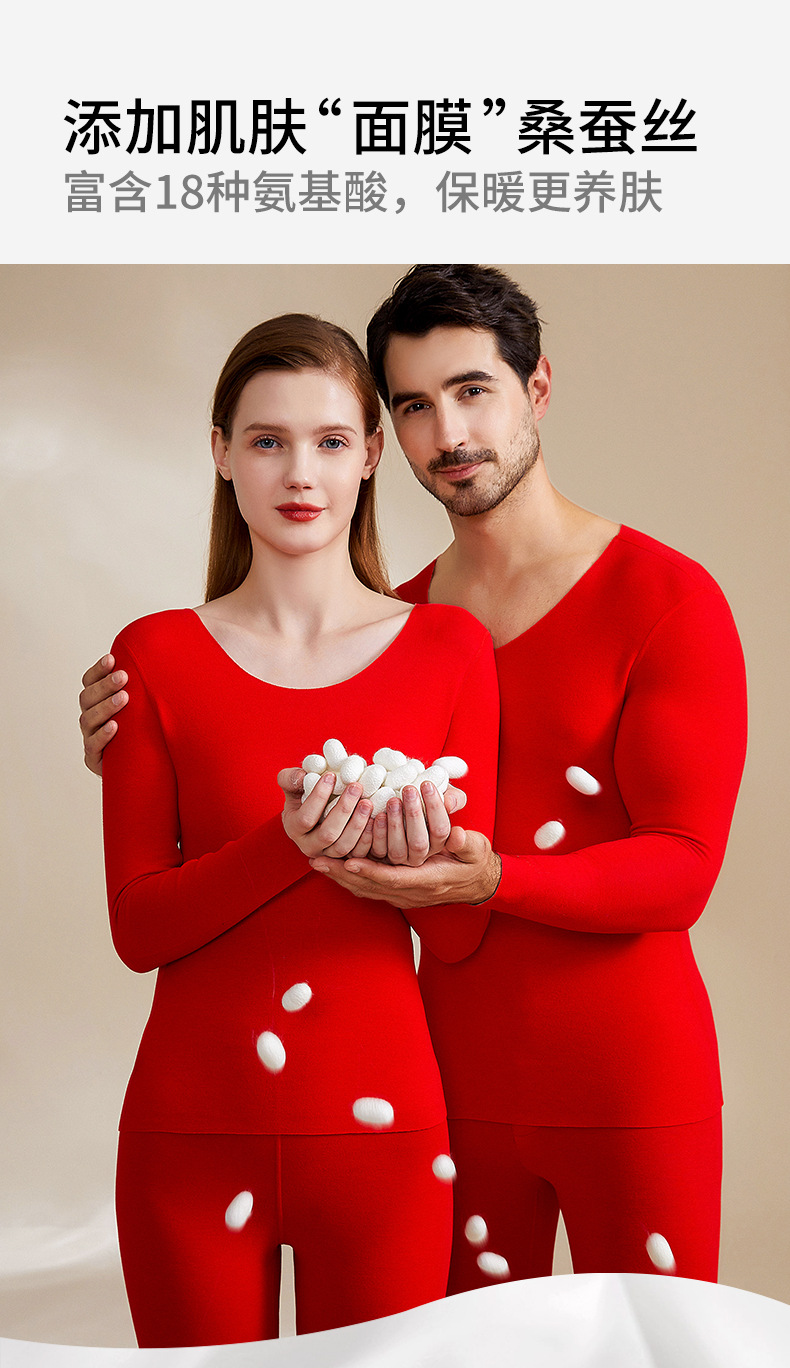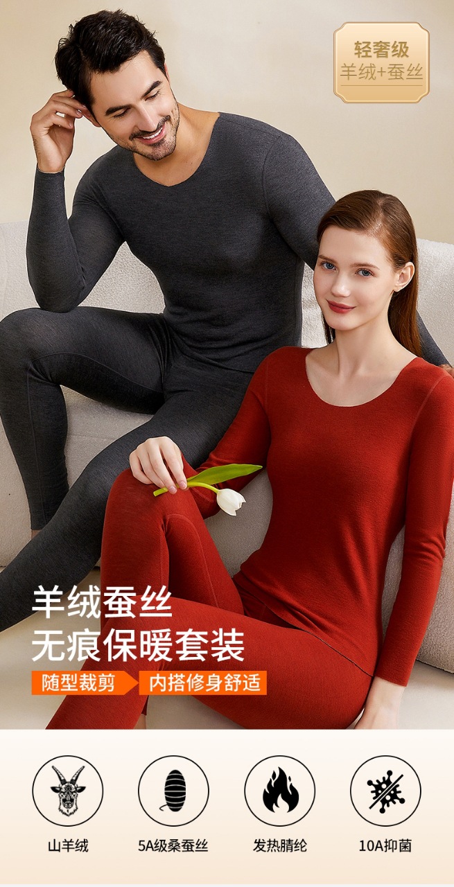 A級デロンカシミヤシルク蓄熱シームレス保温下着セット カップル向け 秋冬10A抗菌秋服秋パンツ