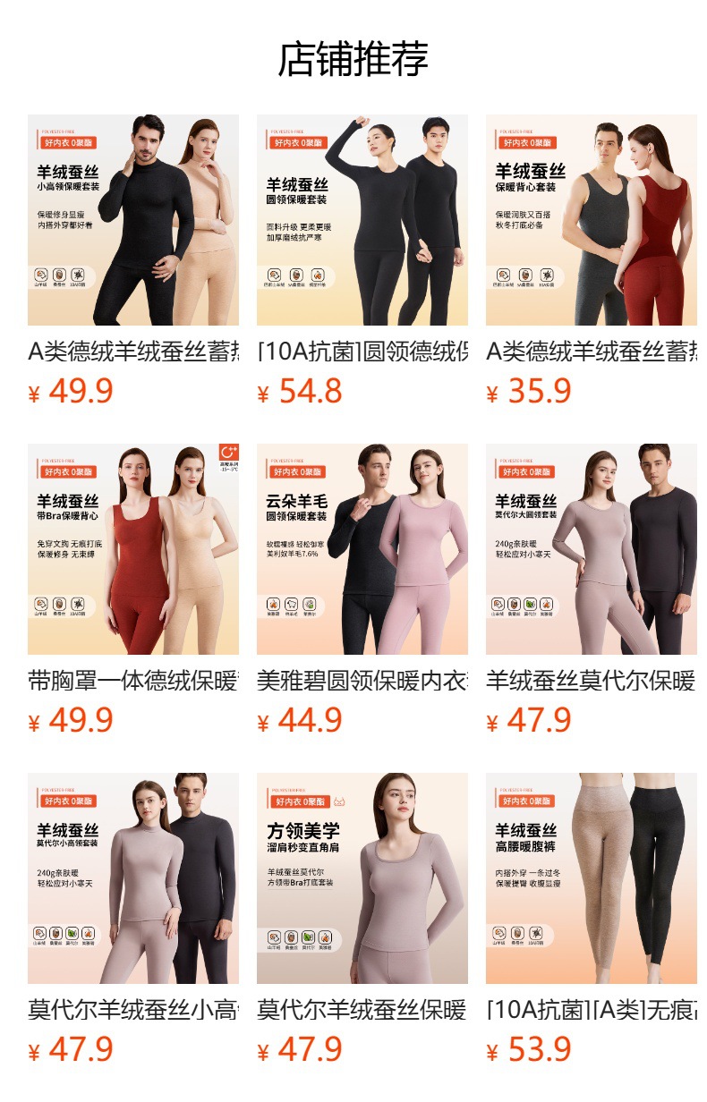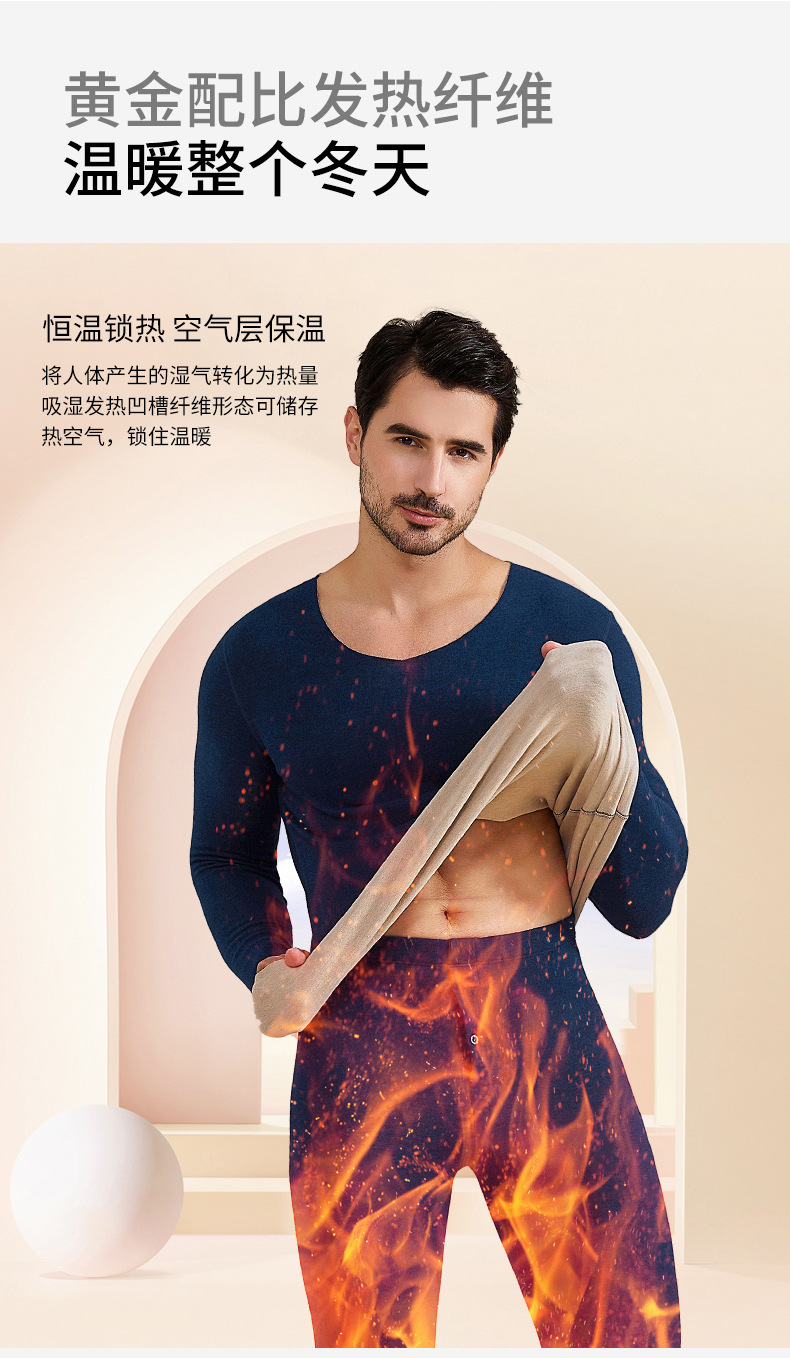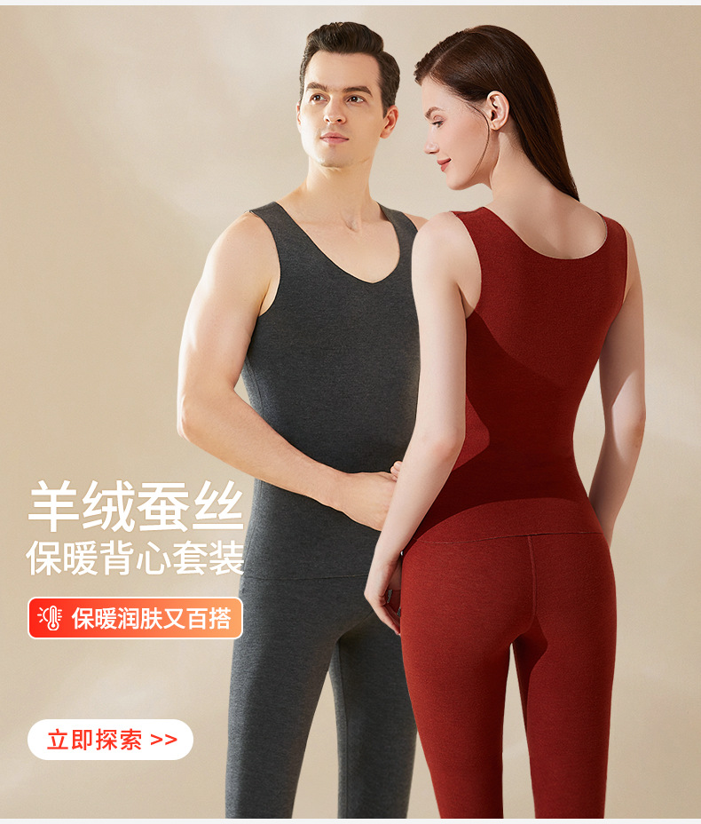 A級デロンカシミヤシルク蓄熱シームレス保温下着セット カップル向け 秋冬10A抗菌秋服秋パンツ