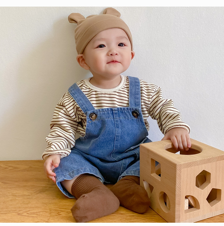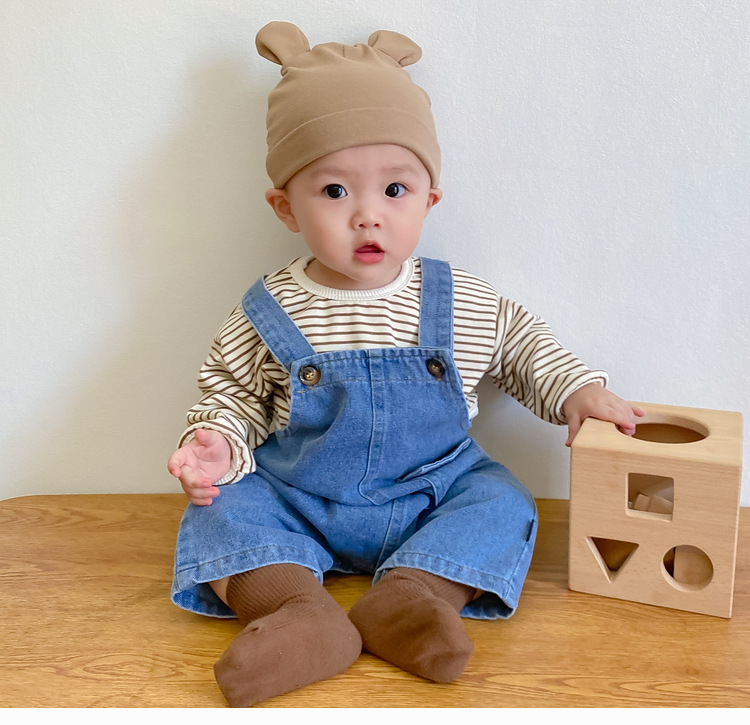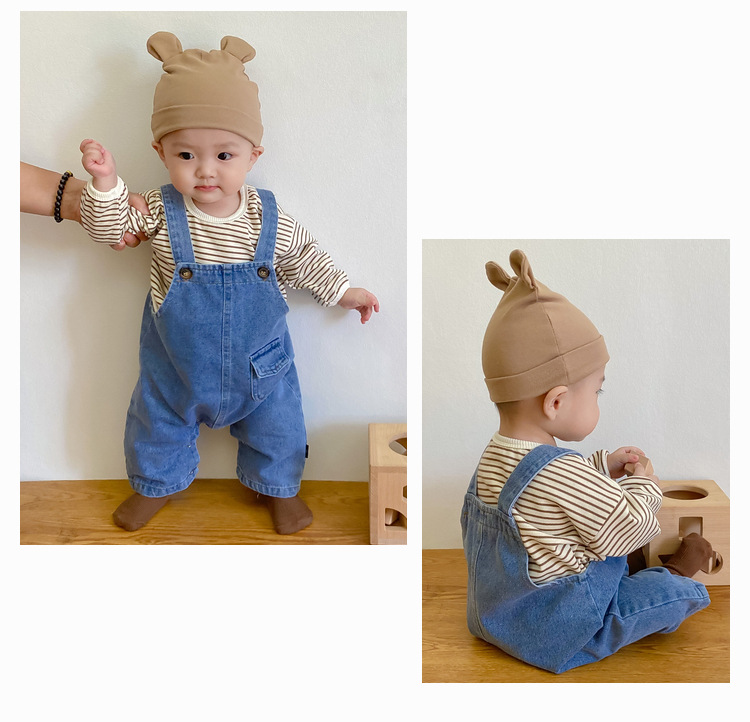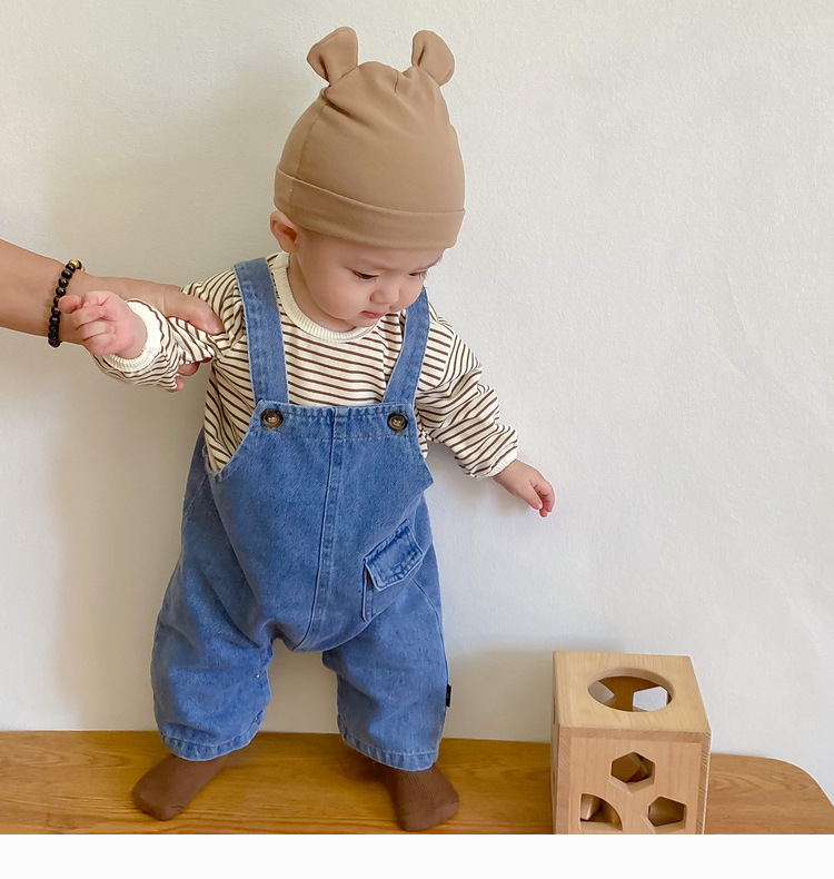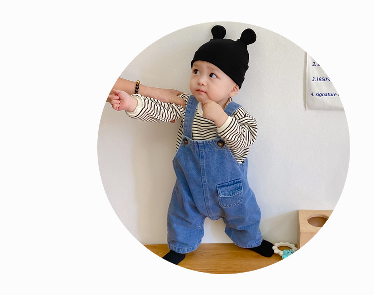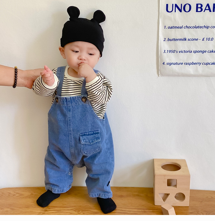 韓国子供服ベビー服ins秋服子供用デニムバックパンツセット男女赤ちゃん新生児ロンパース