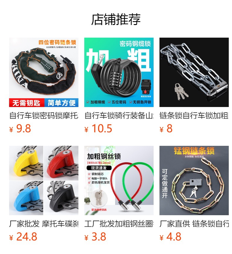 自転車ロックパスワードチェーンロック太く盗難防止ロック電気自動車携帯チェーンロック自転車ロック卸売り