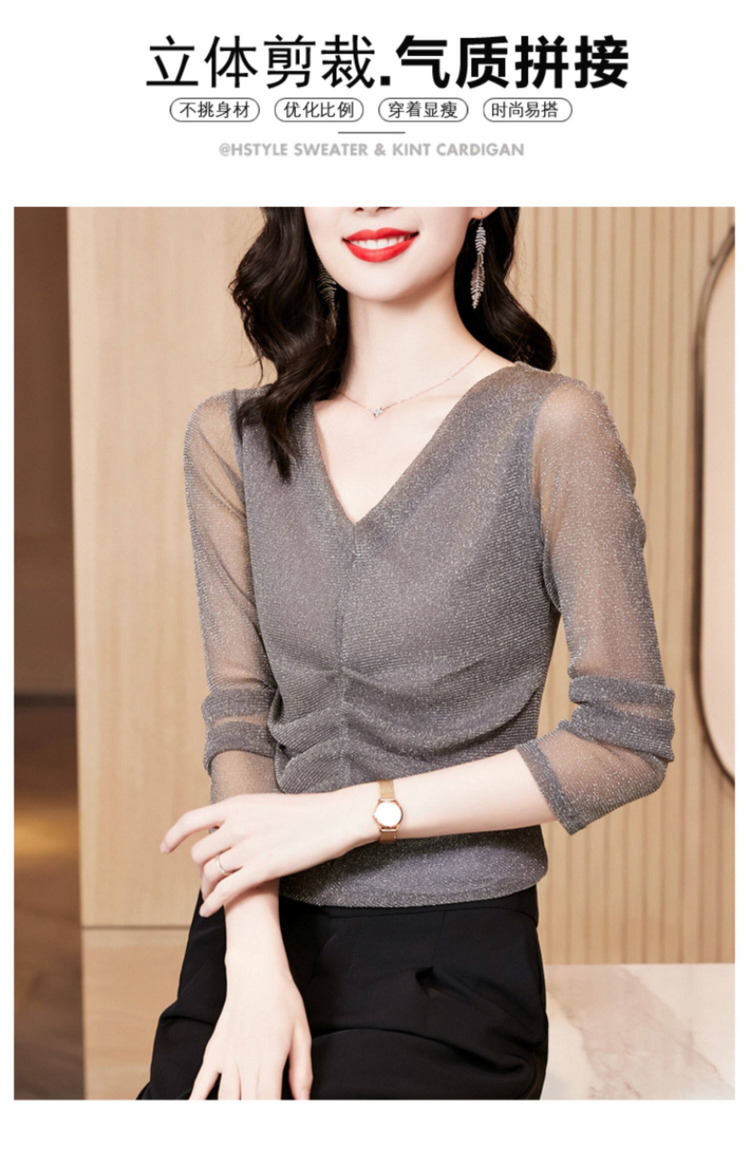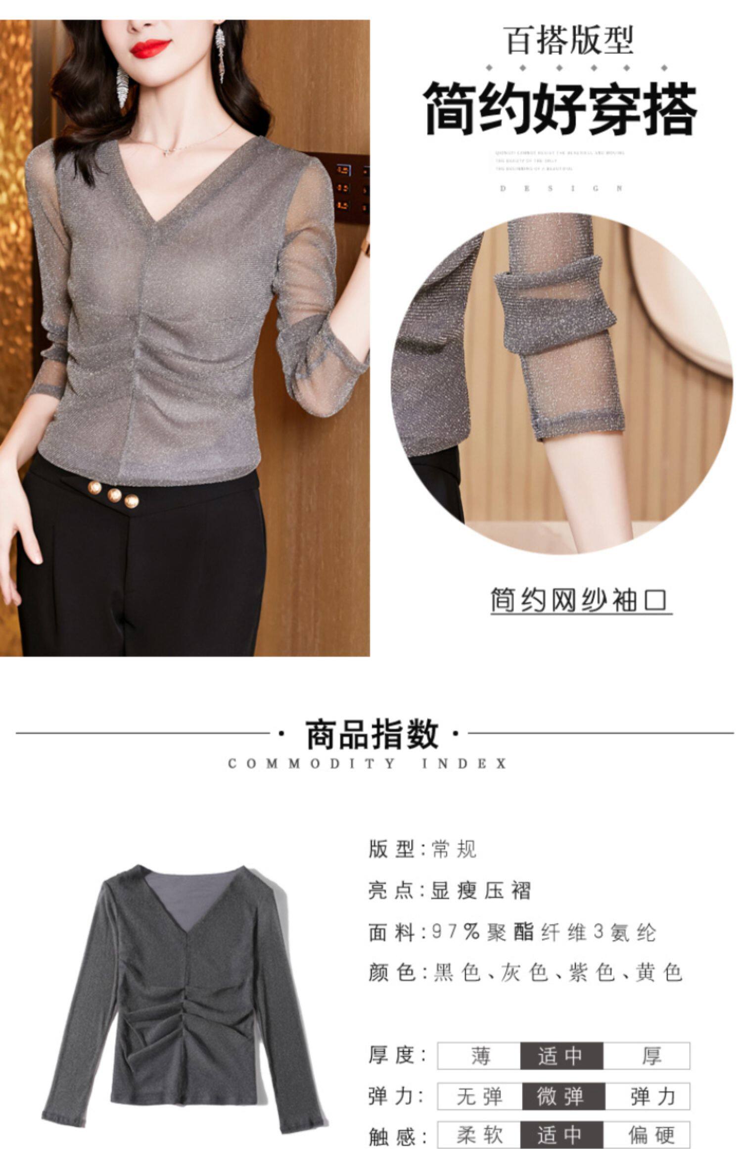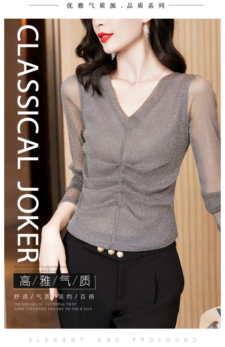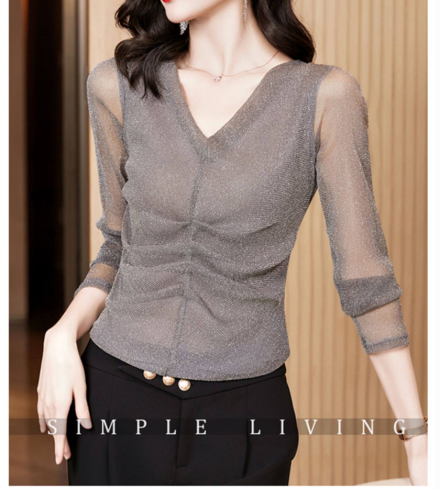 網紗の底のシャツの女性の薄いタイプの春秋の紗の服の長袖の中で薄い紗の上着の洋風のファッション的な初秋の小さいシャツを掛けます。