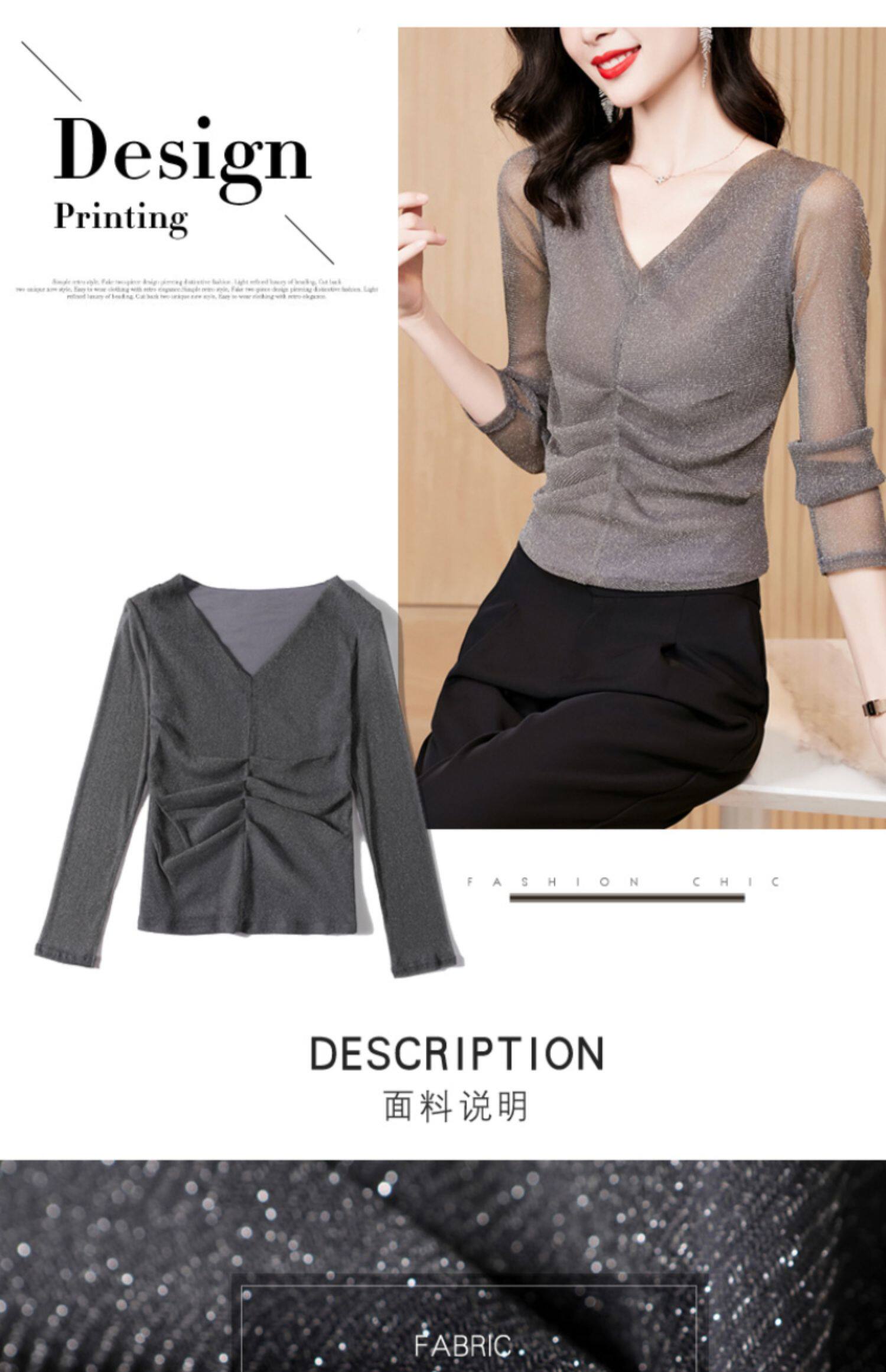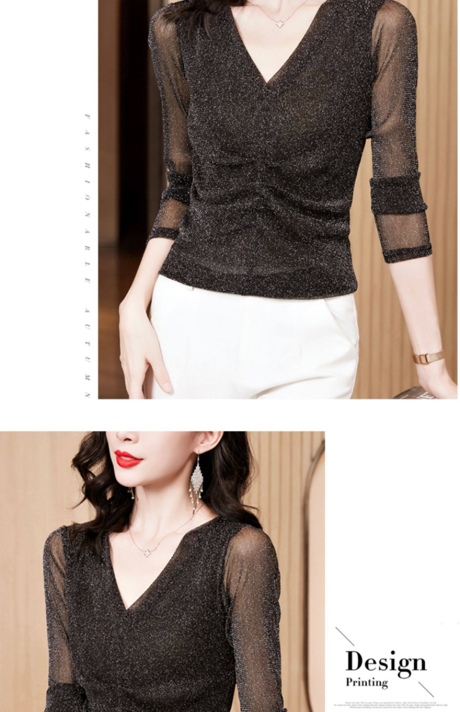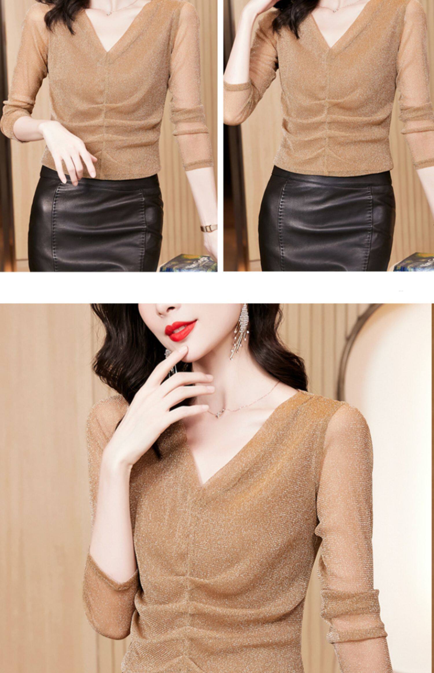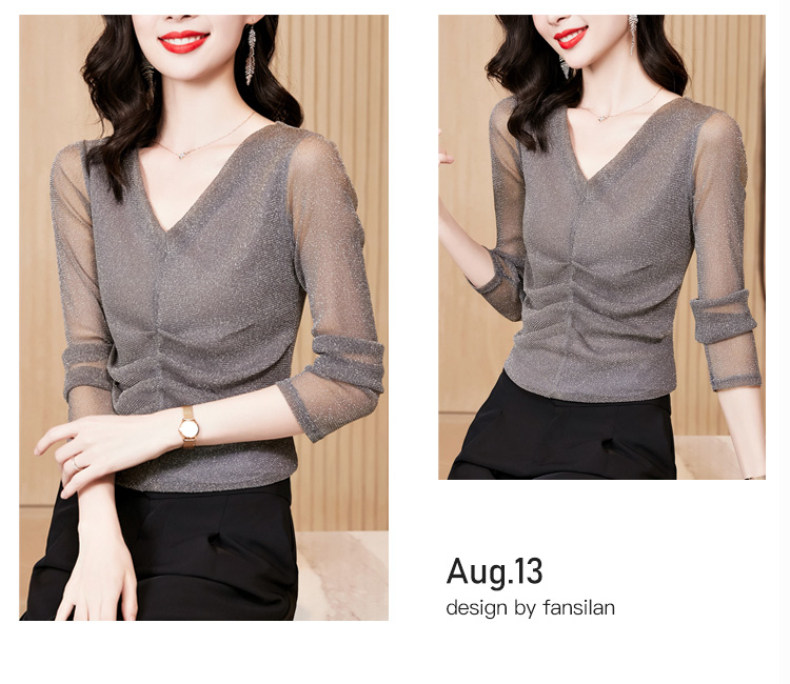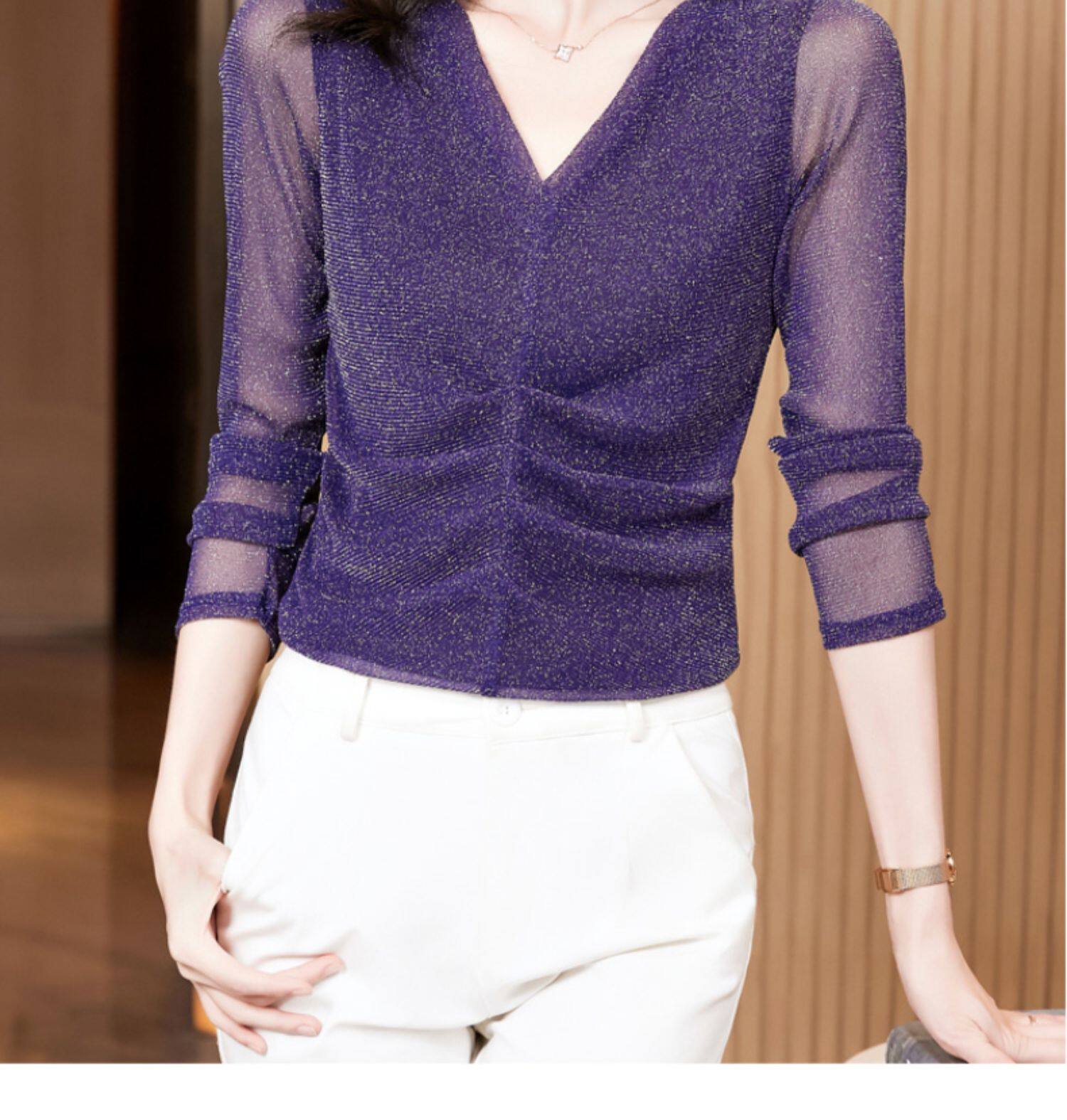 網紗の底のシャツの女性の薄いタイプの春秋の紗の服の長袖の中で薄い紗の上着の洋風のファッション的な初秋の小さいシャツを掛けます。