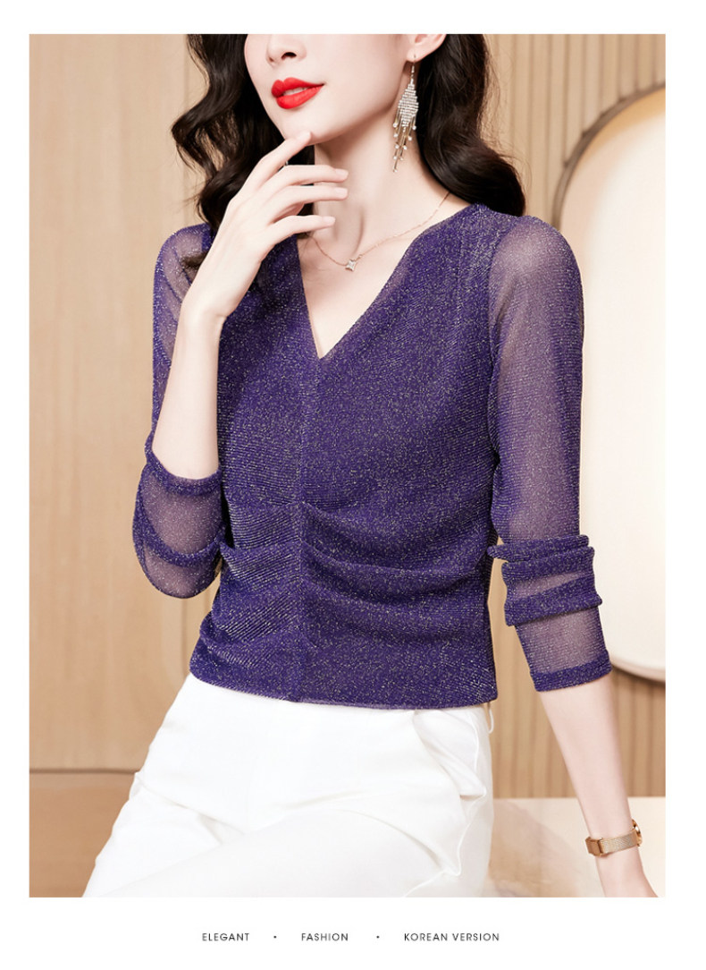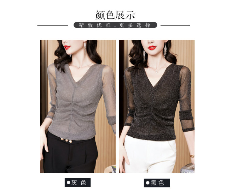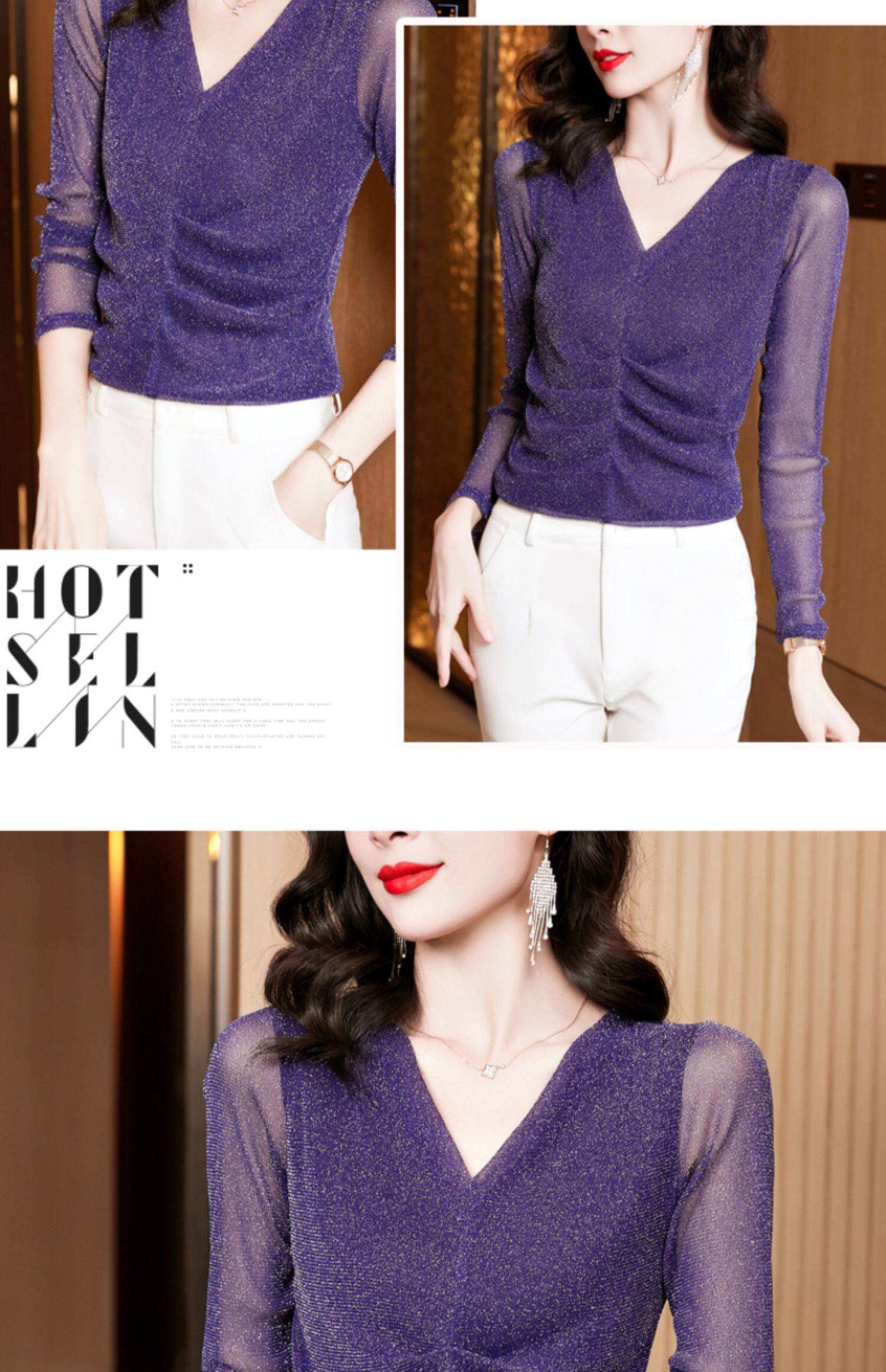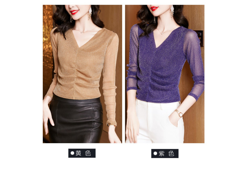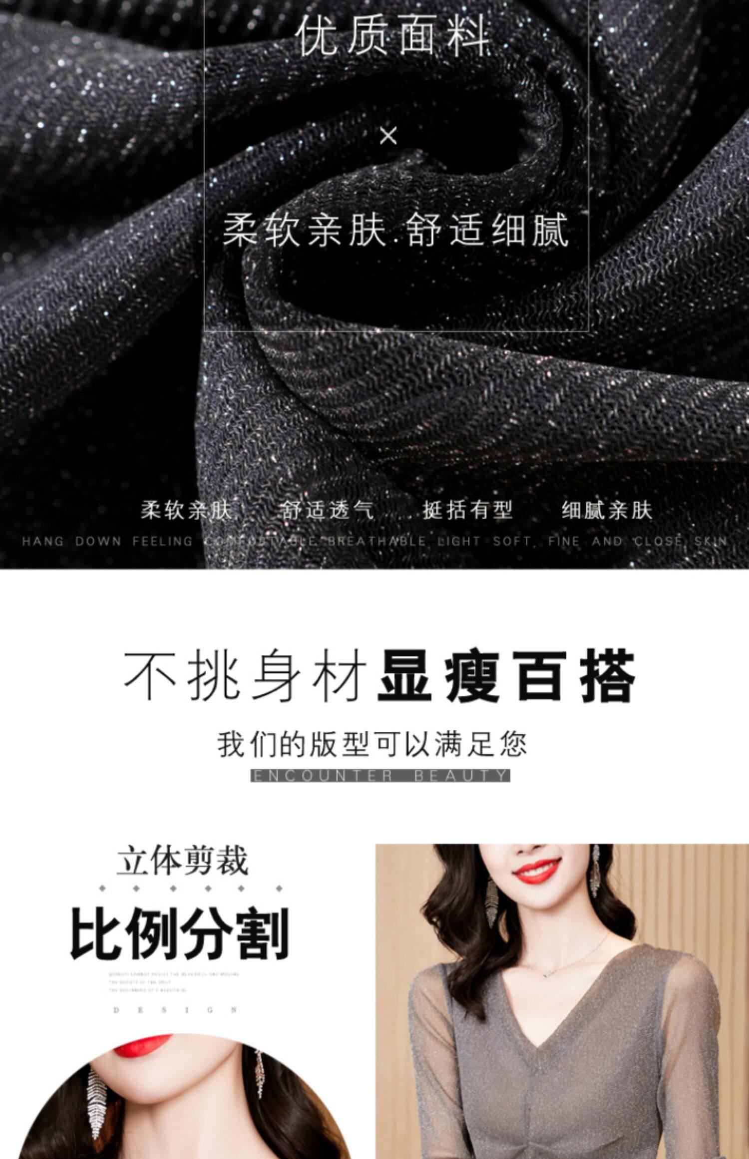 網紗の底のシャツの女性の薄いタイプの春秋の紗の服の長袖の中で薄い紗の上着の洋風のファッション的な初秋の小さいシャツを掛けます。