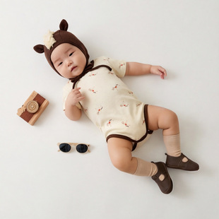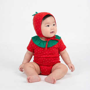 ins春の韓国風トマトプリントデザインロンパース2026新作ベビーワンピースベビー百日祝い服セット