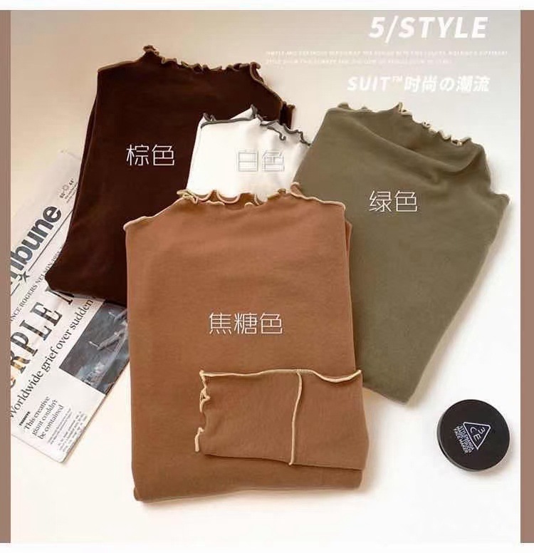 両面着用可能なドイツ製ベルベット素材のレディースインナー、2025年秋冬向け、暖かいハーフタートルネック、フリル付き、長袖Tシャツトップス