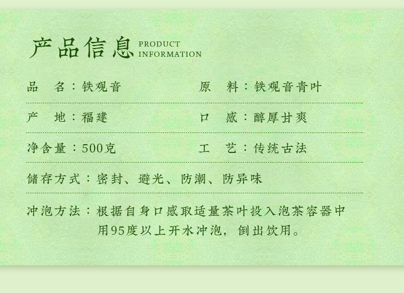 A5祥華高山半手作り特緑花香型正味鉄観音500グラム