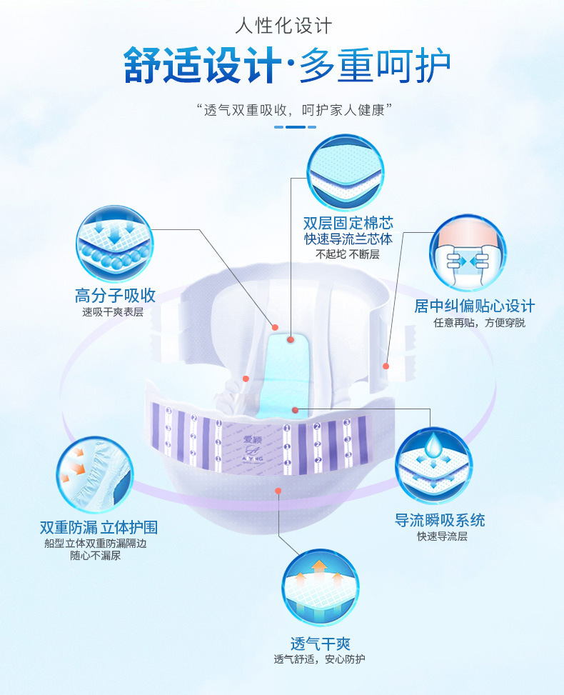 表面不織布、吸収紙、綿状木材パルプ、吸水性ポリマー、PE漏れ防止底フィルム