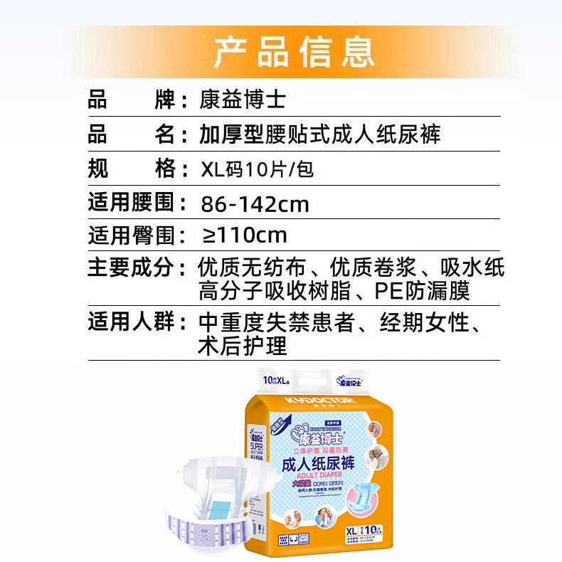 康益博士の成人の紙おむつの大きいサイズのXLコードの10枚の老人の看護用品の高齢者の尿が濡れない紙おむつ