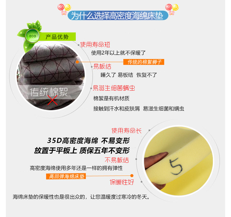 高密度のスポンジのマットレスの厚い硬いスポンジのマットの学生寮のマットレスのシングルの泡はマットレスのクッションを決めます。