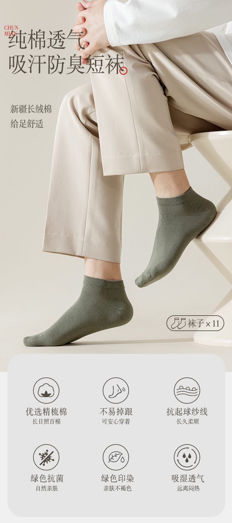 靴下の男性用ソックス春夏の純色防臭吸汗ソックス春と秋の薄い黒い男性用靴下