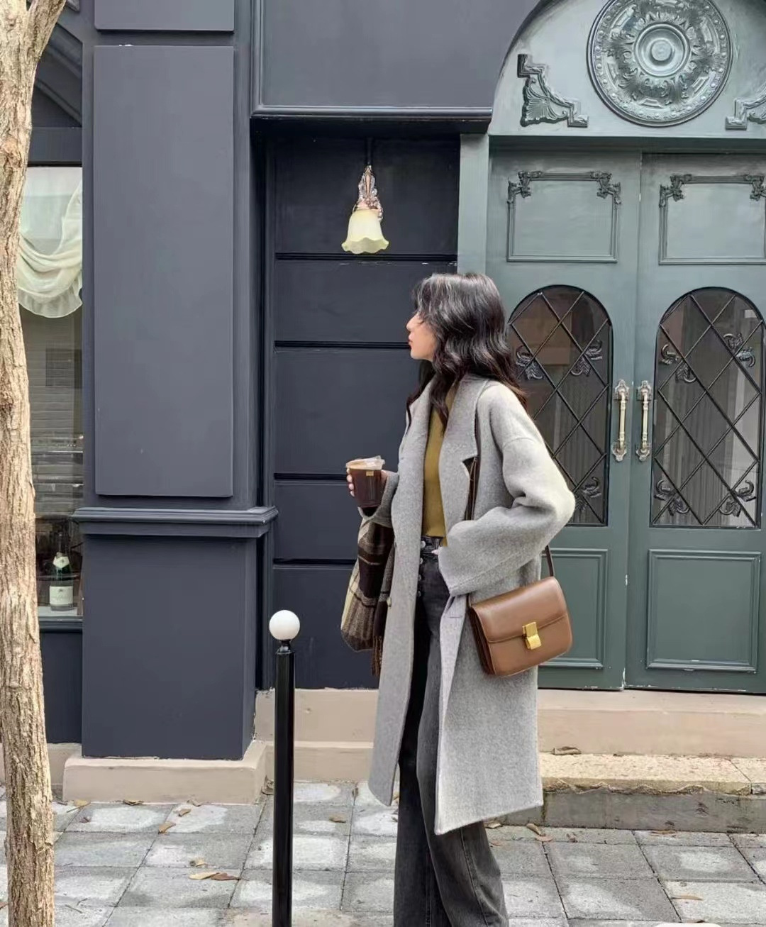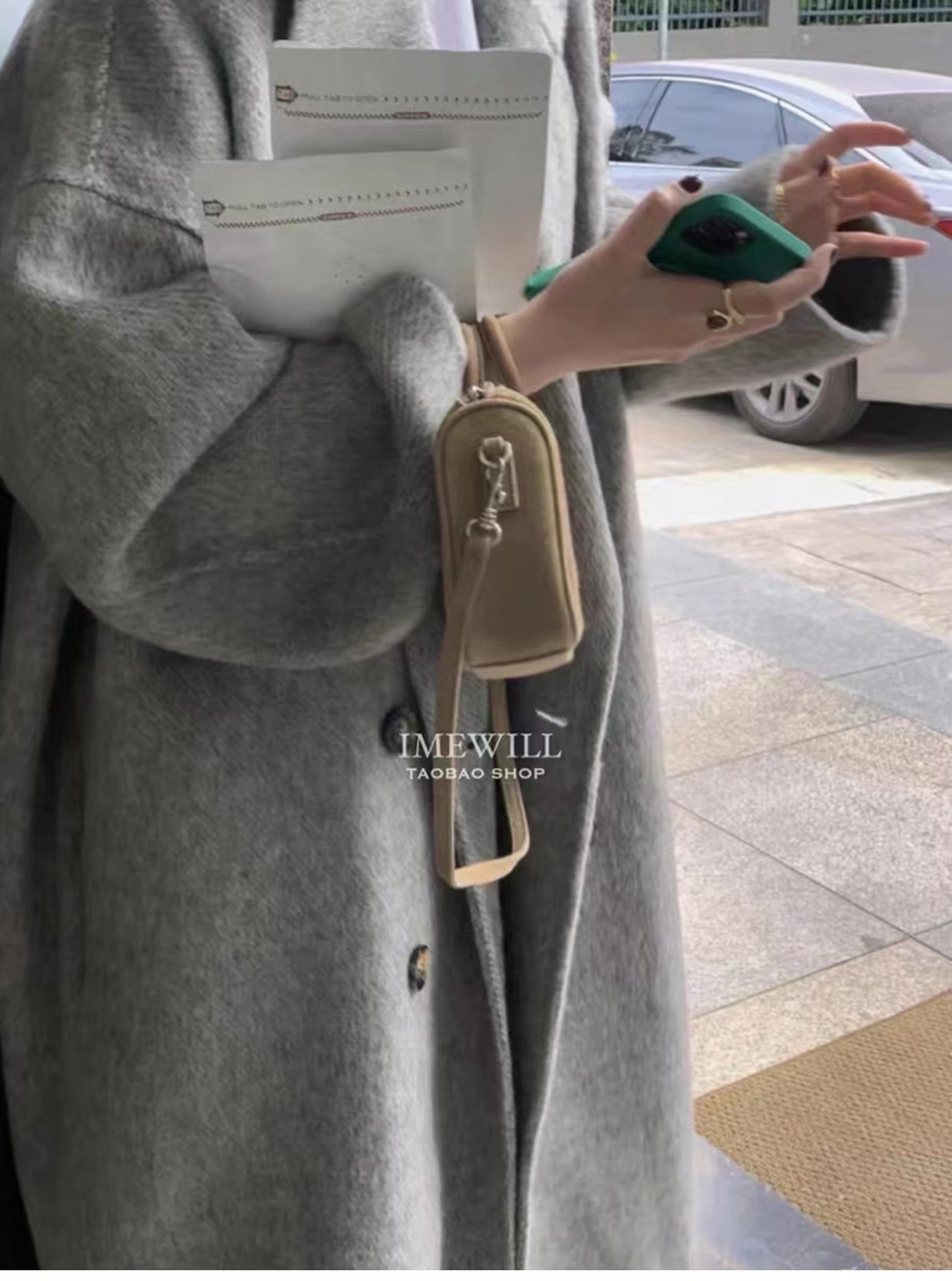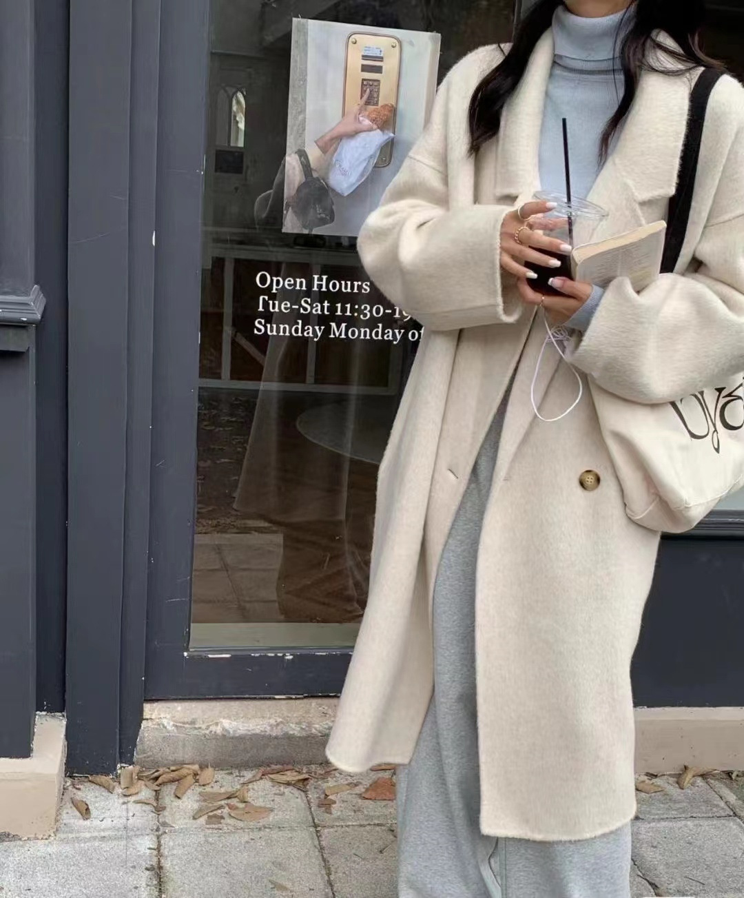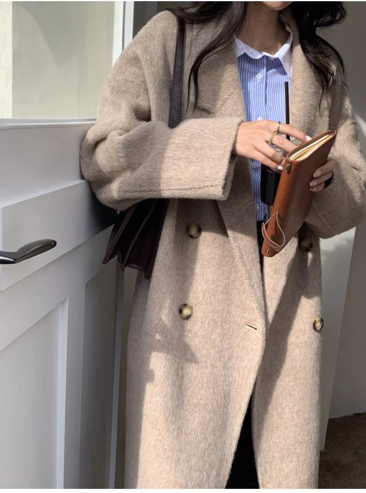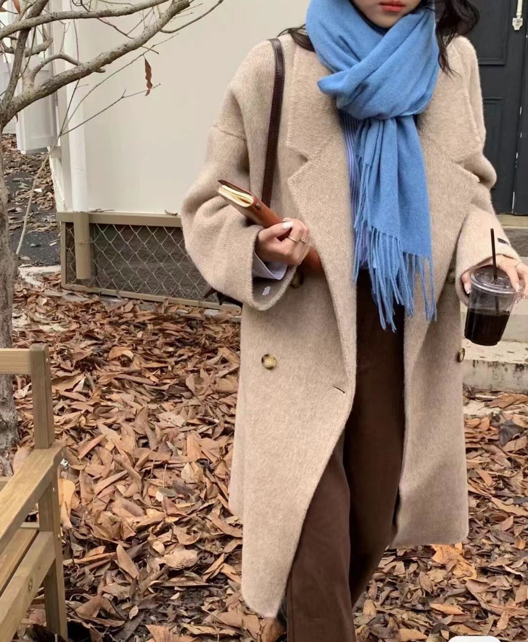 【ハイエンドの赤ちゃんのキャメルケース】長毛の赤ちゃんのキャメルケースの両面のウールコートの韓系のゆったりした高級感のあるコートの女性