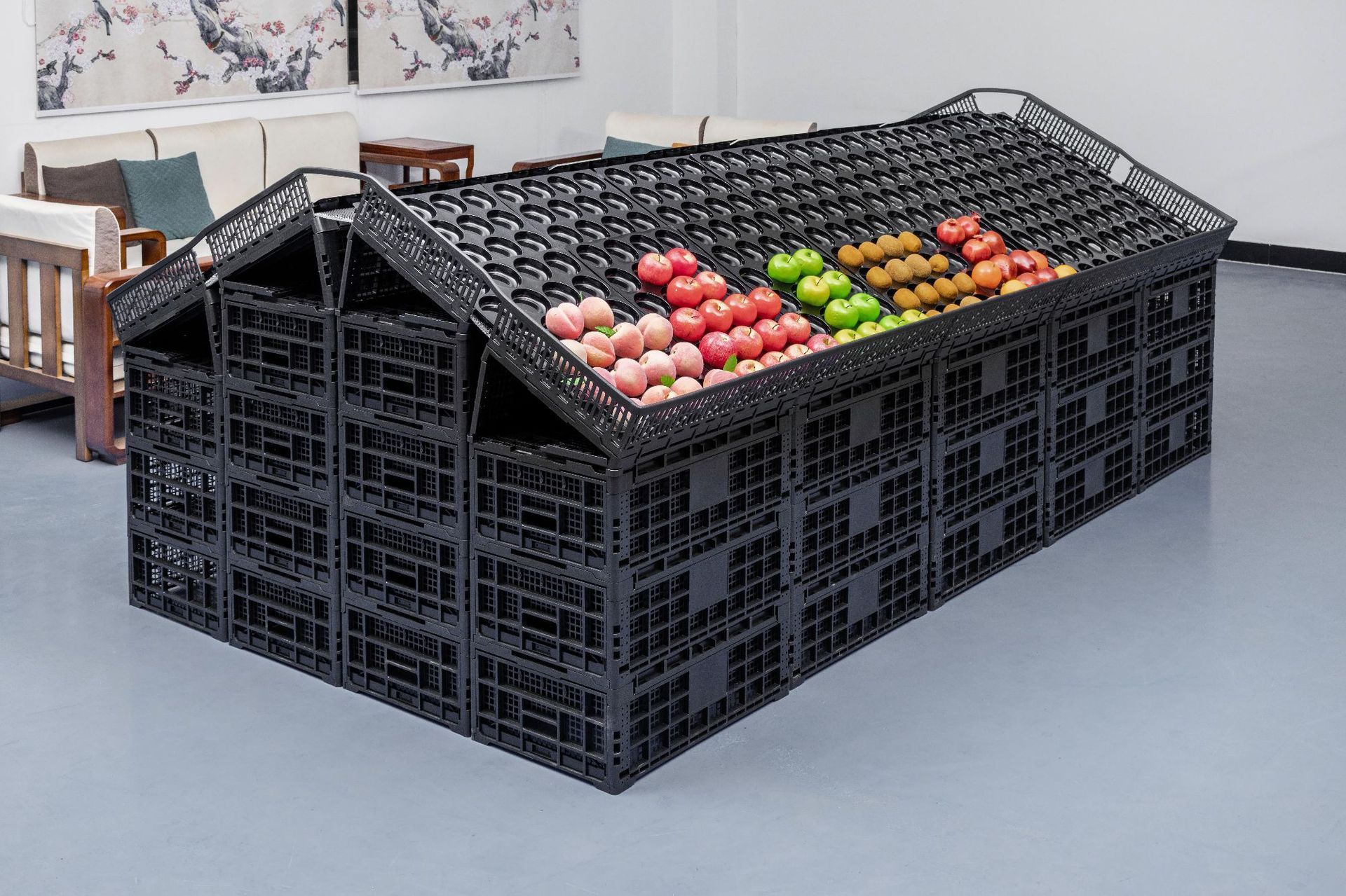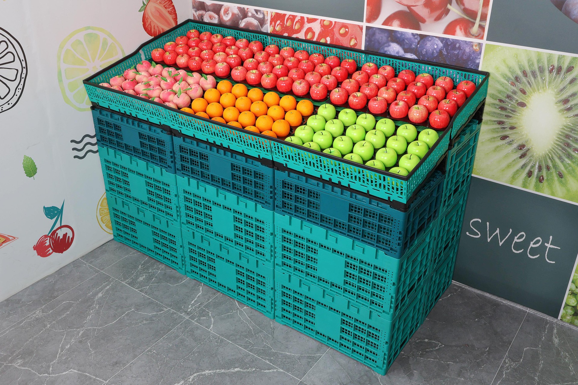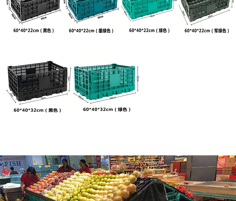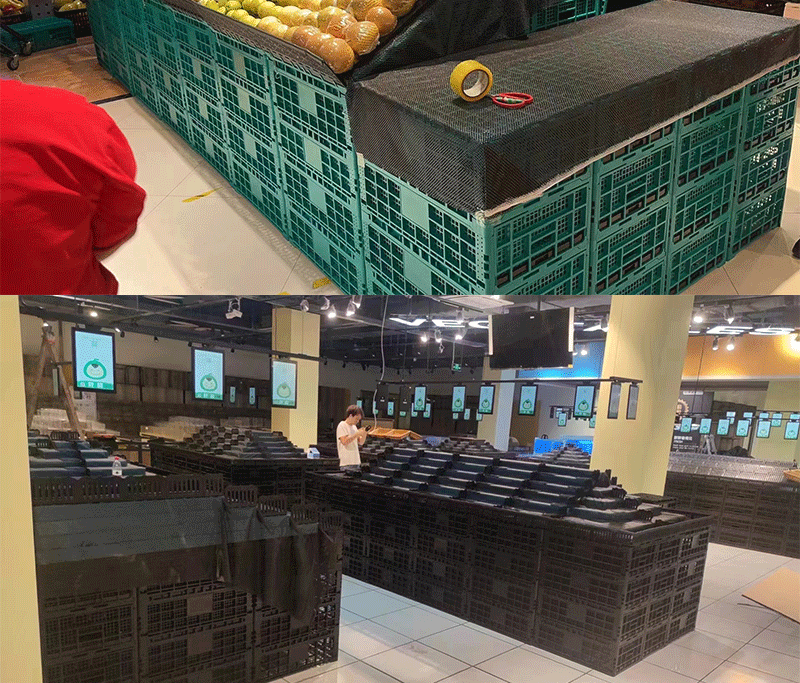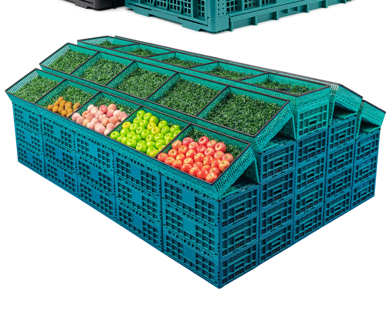 スーパーマーケットの野菜、生鮮食品、スナック、果物店の陳列棚、折りたたみ式スプライシングスタック、折りたたみ式プラスチックターンオーバーバスケット