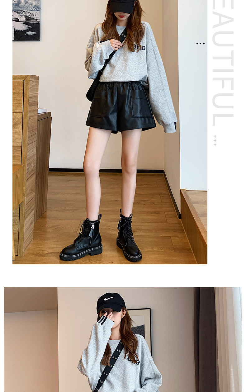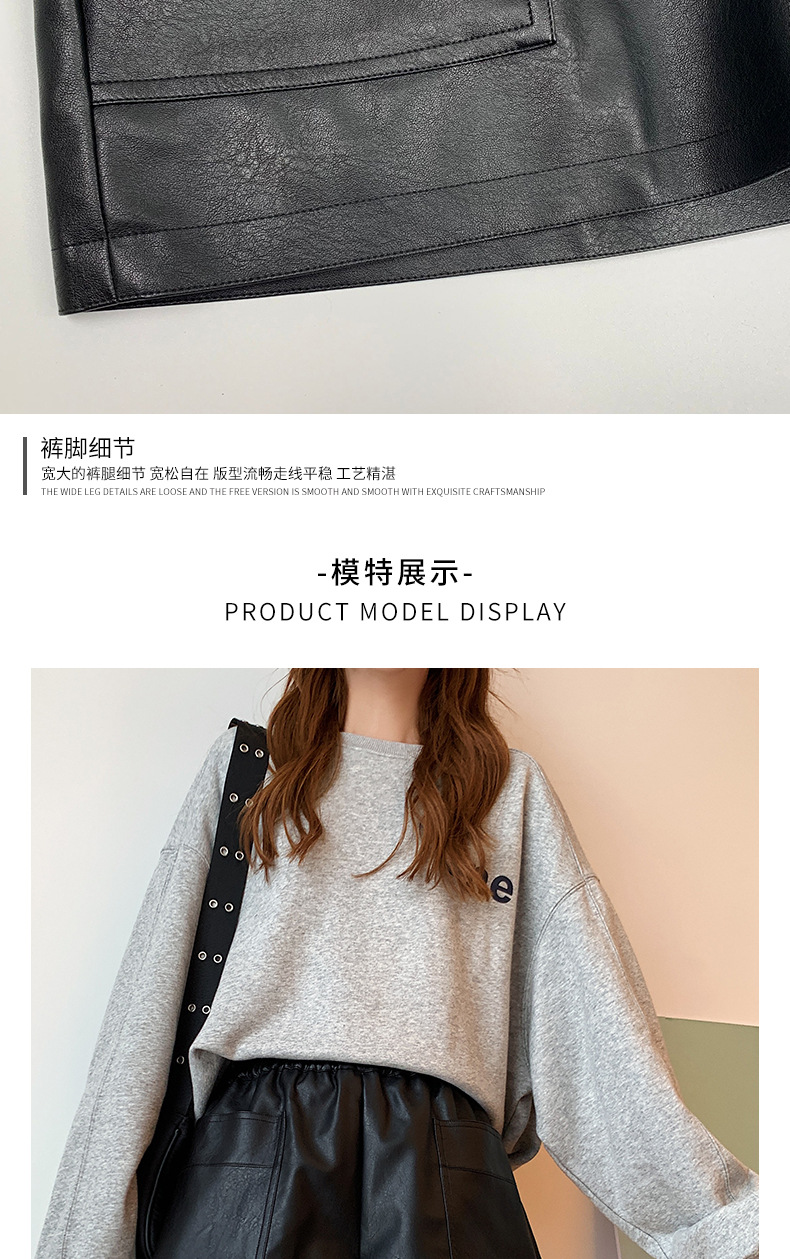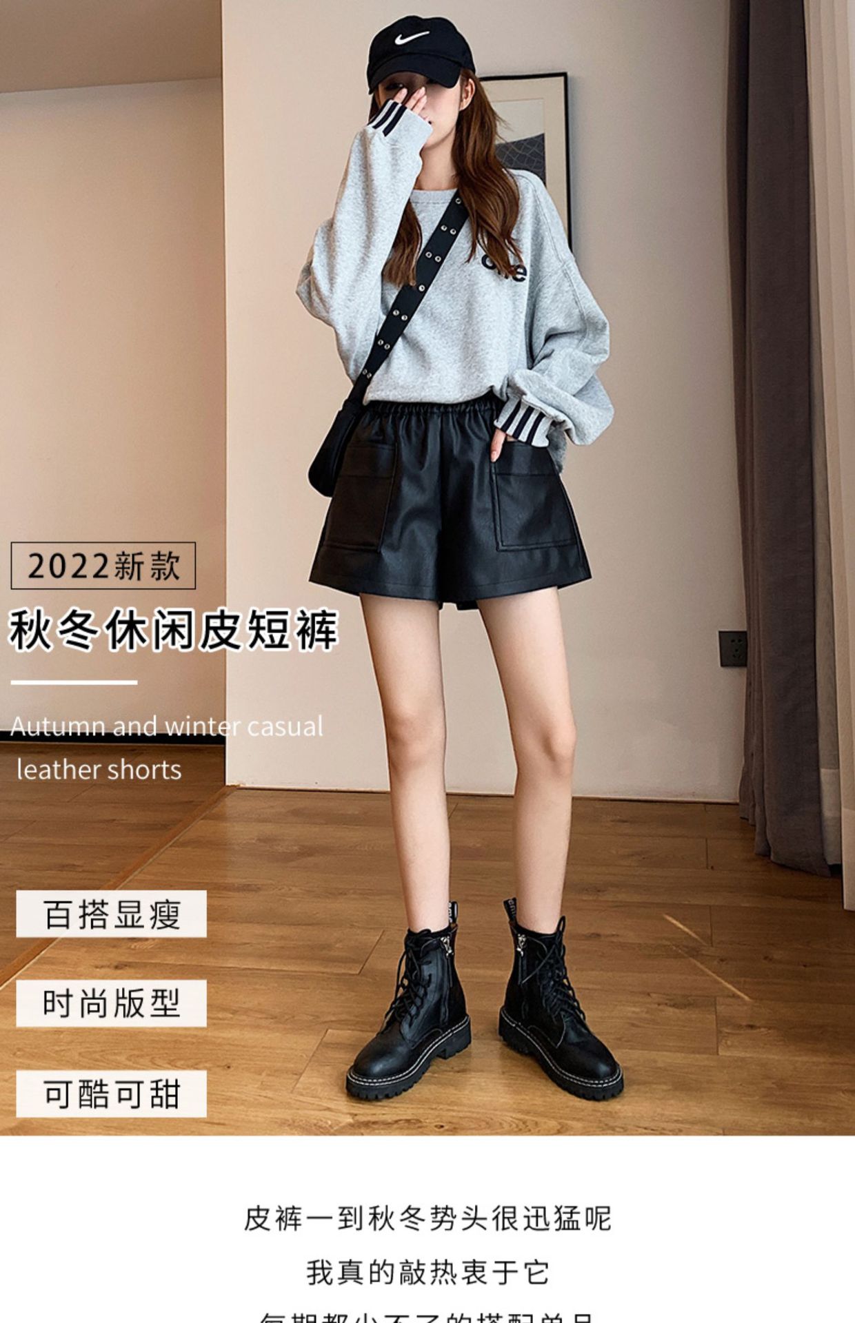 レザーショーツレディースアウターウェア2024秋冬新作PU大きいサイズカジュアルパンツゆったりワイドレッグスリムハイウエストレギンスブーツパンツ