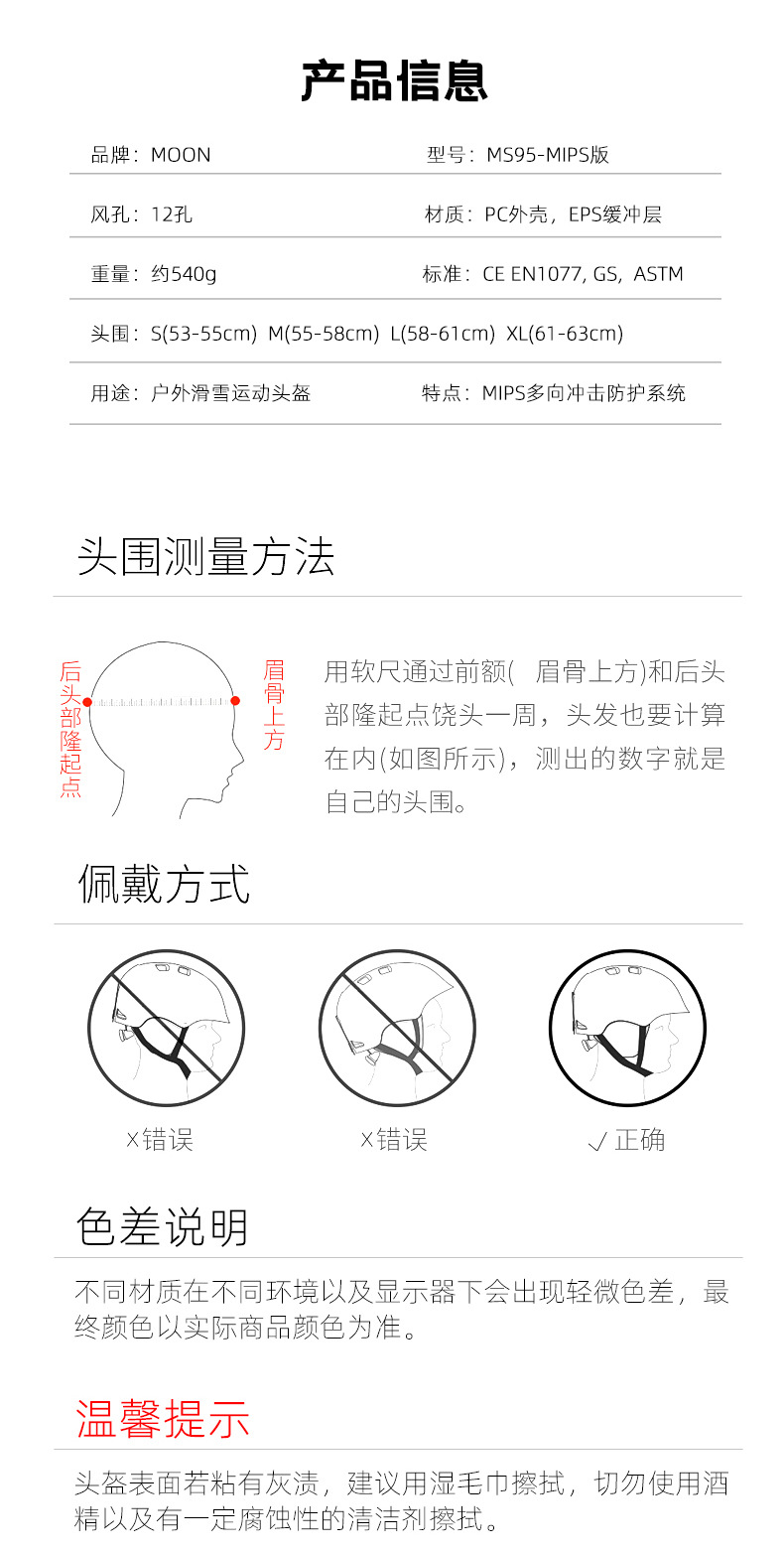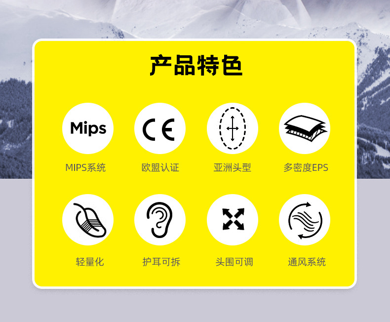 Moonスキーmipsヘルメットクロスボーダー電商鎧風鏡付き一体成型男女保護スキーヘルメット