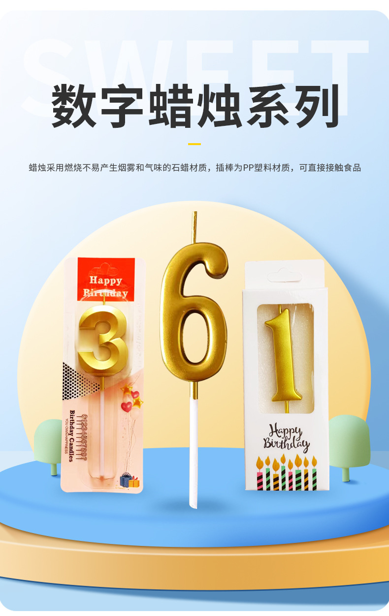 金メッキデジタルろうそく独立包装ケーキ店焙煎店ケーキ装飾ろうそく赤ちゃん歳慶生ろうそく
