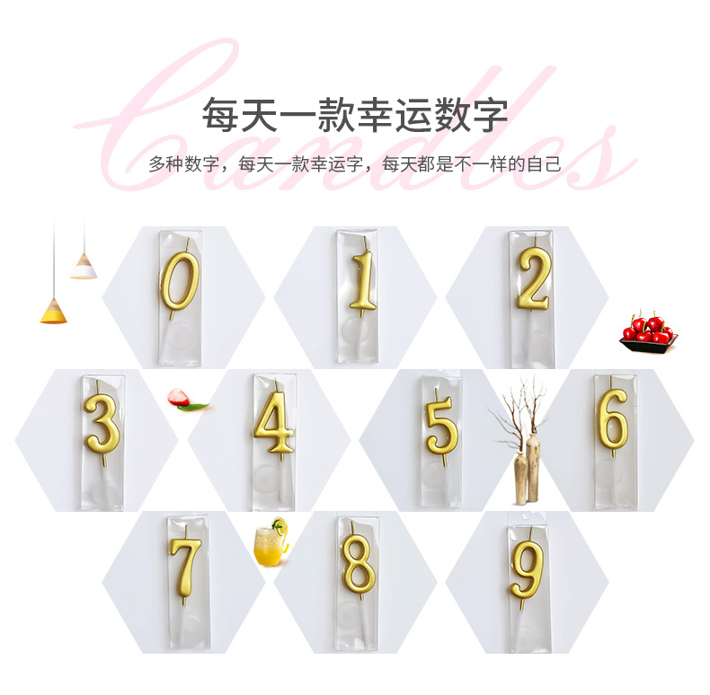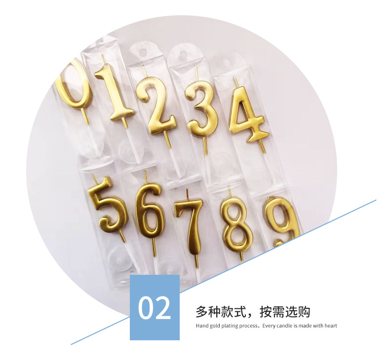 卸売り誕生日ろうそく個性創造性0-9金メッキデジタルろうそくpvc箱入り焙煎店誕生日ケーキろうそく