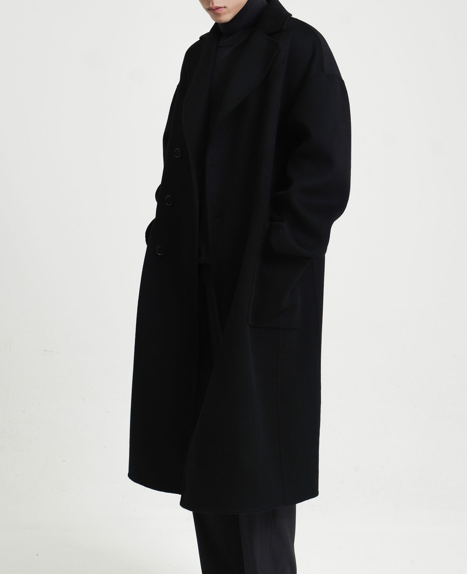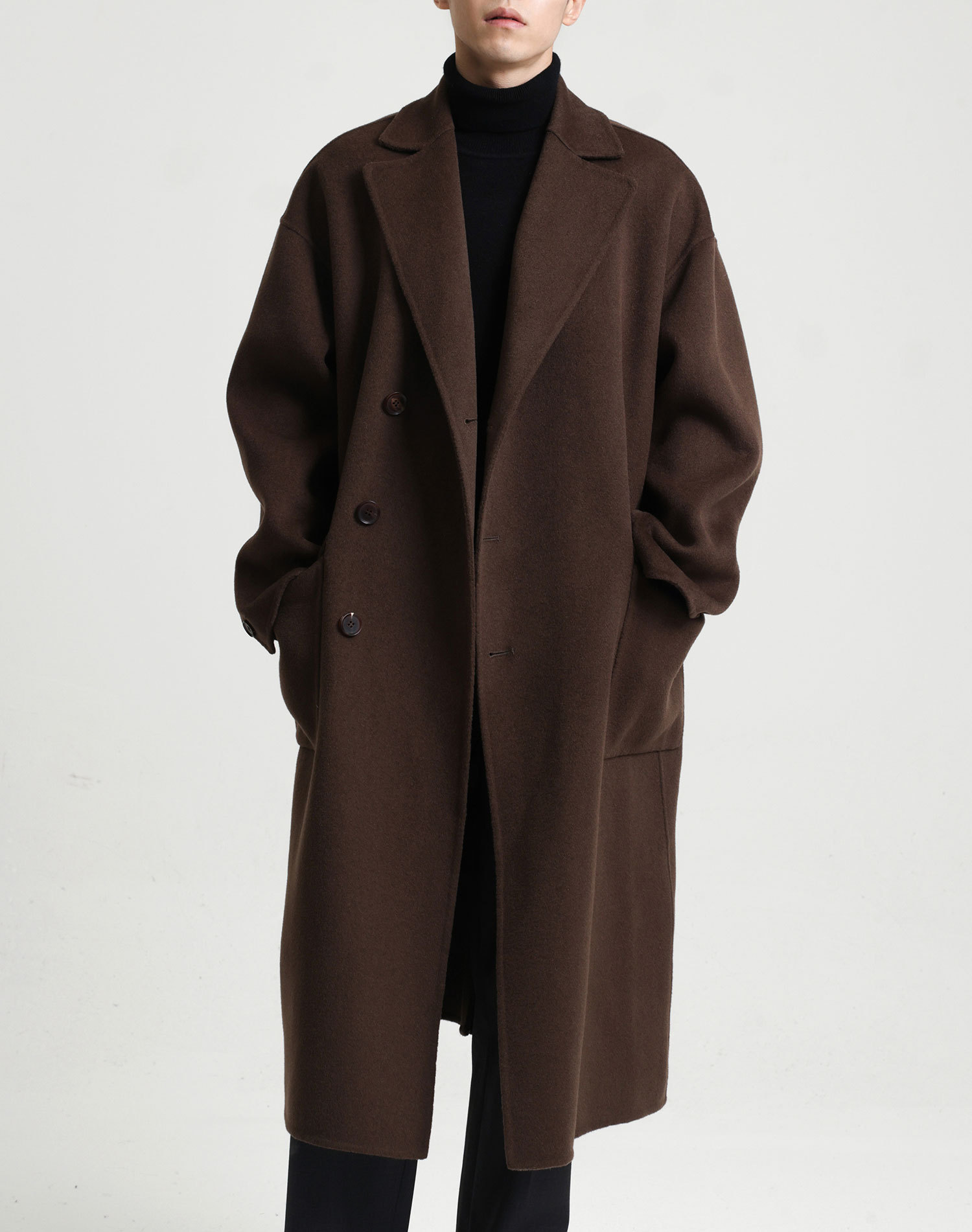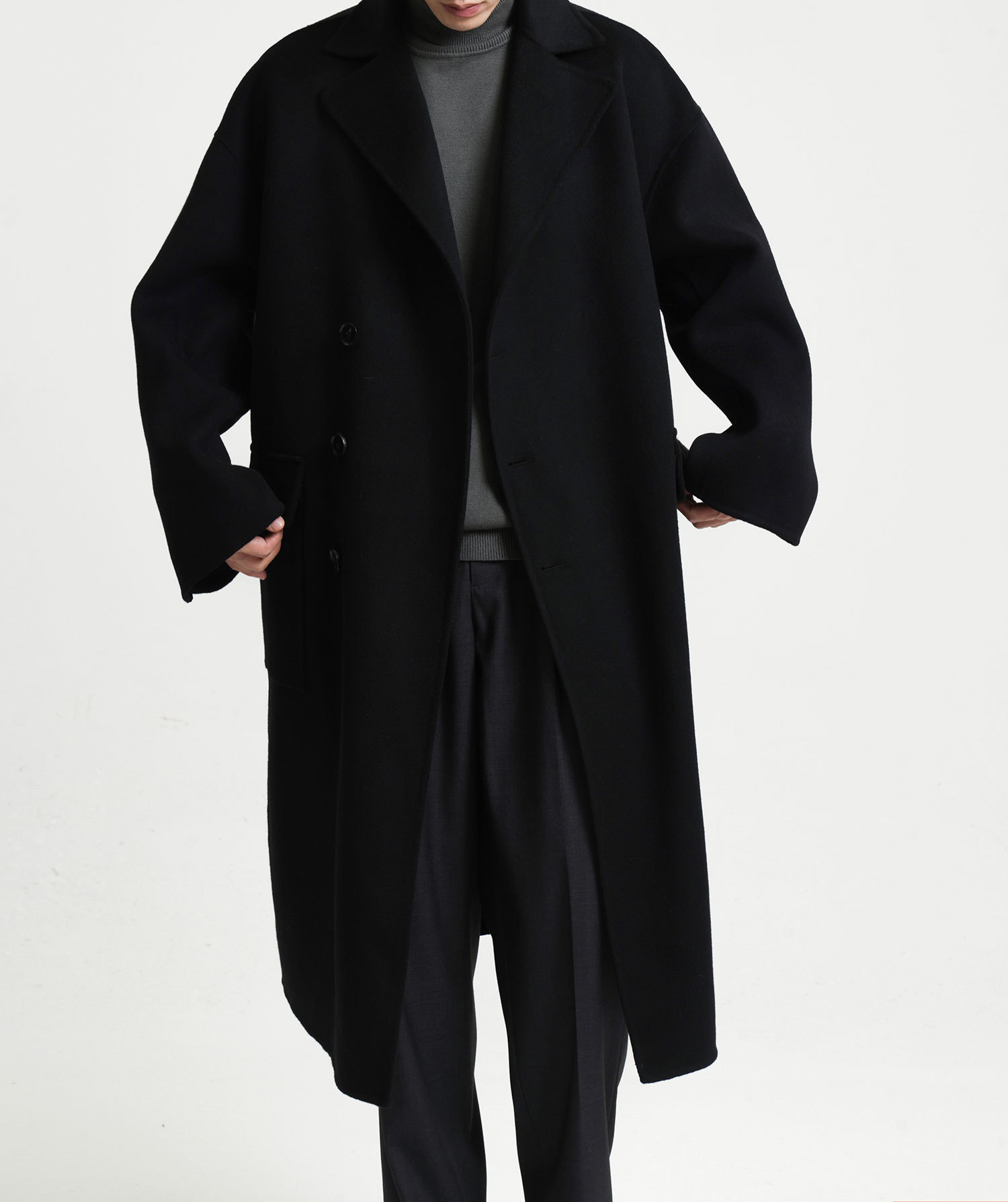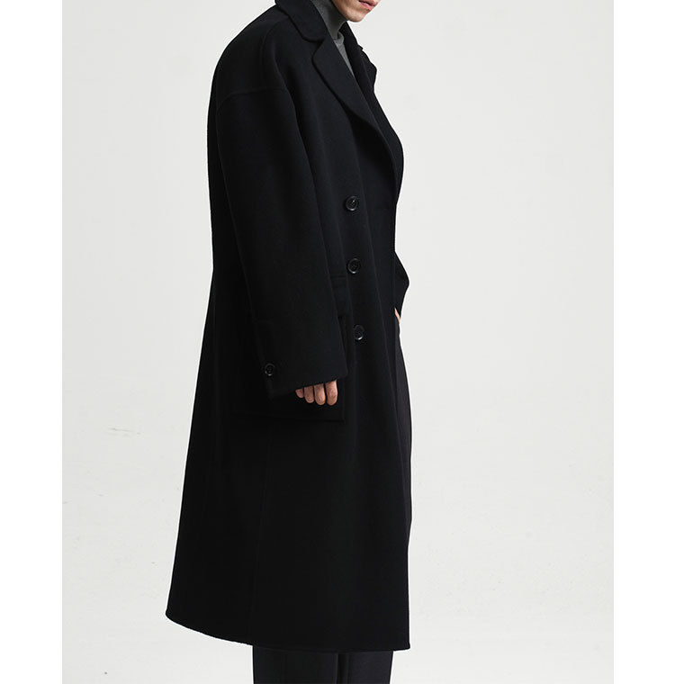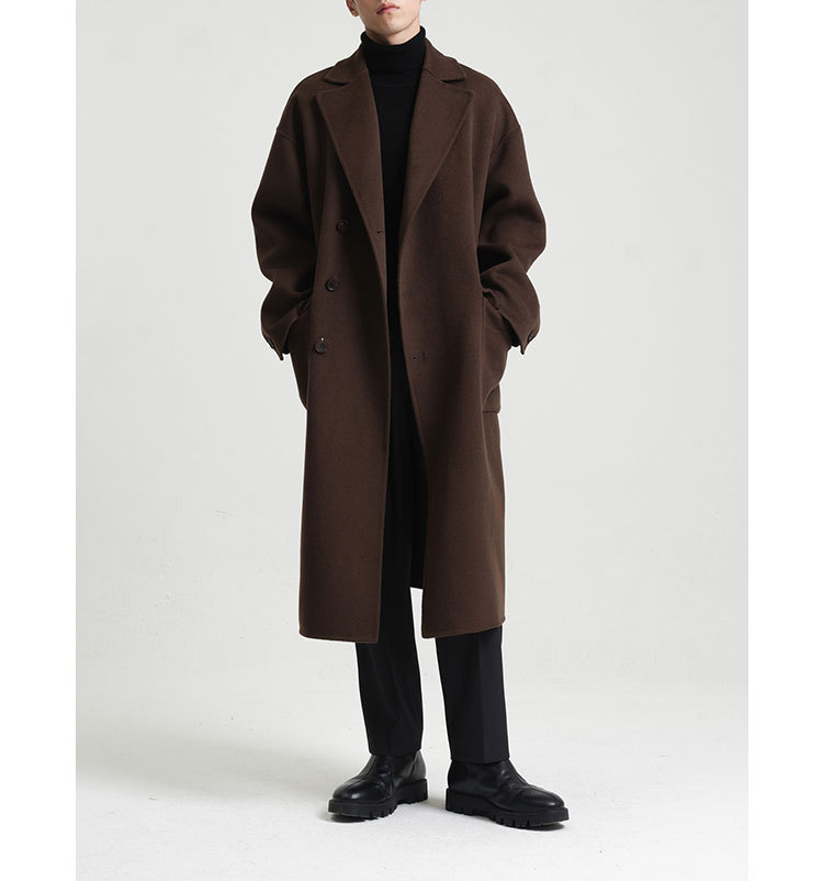 現物の新型の純色のコートの長いタイプの両面はウールのコートの男性の秋冬です。
