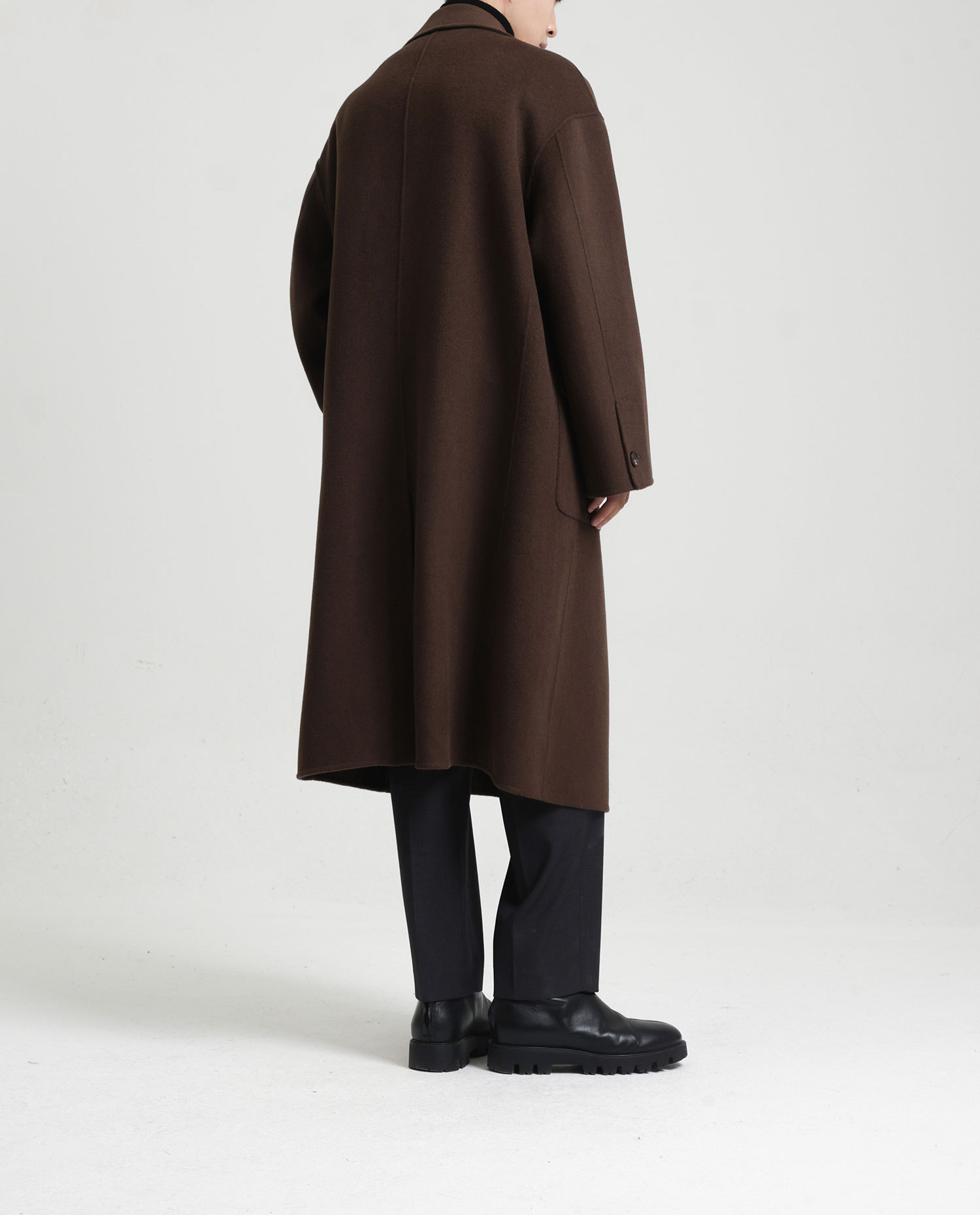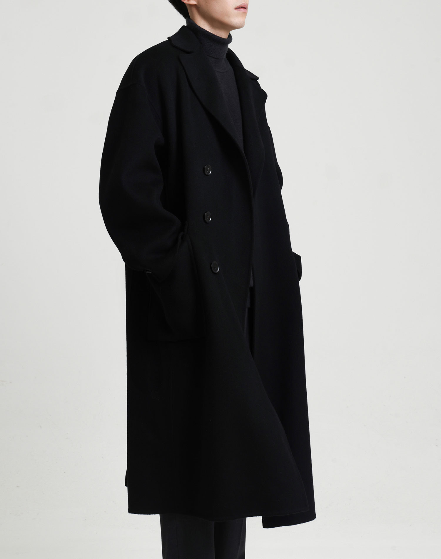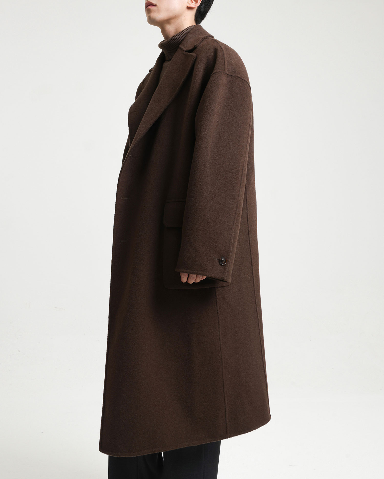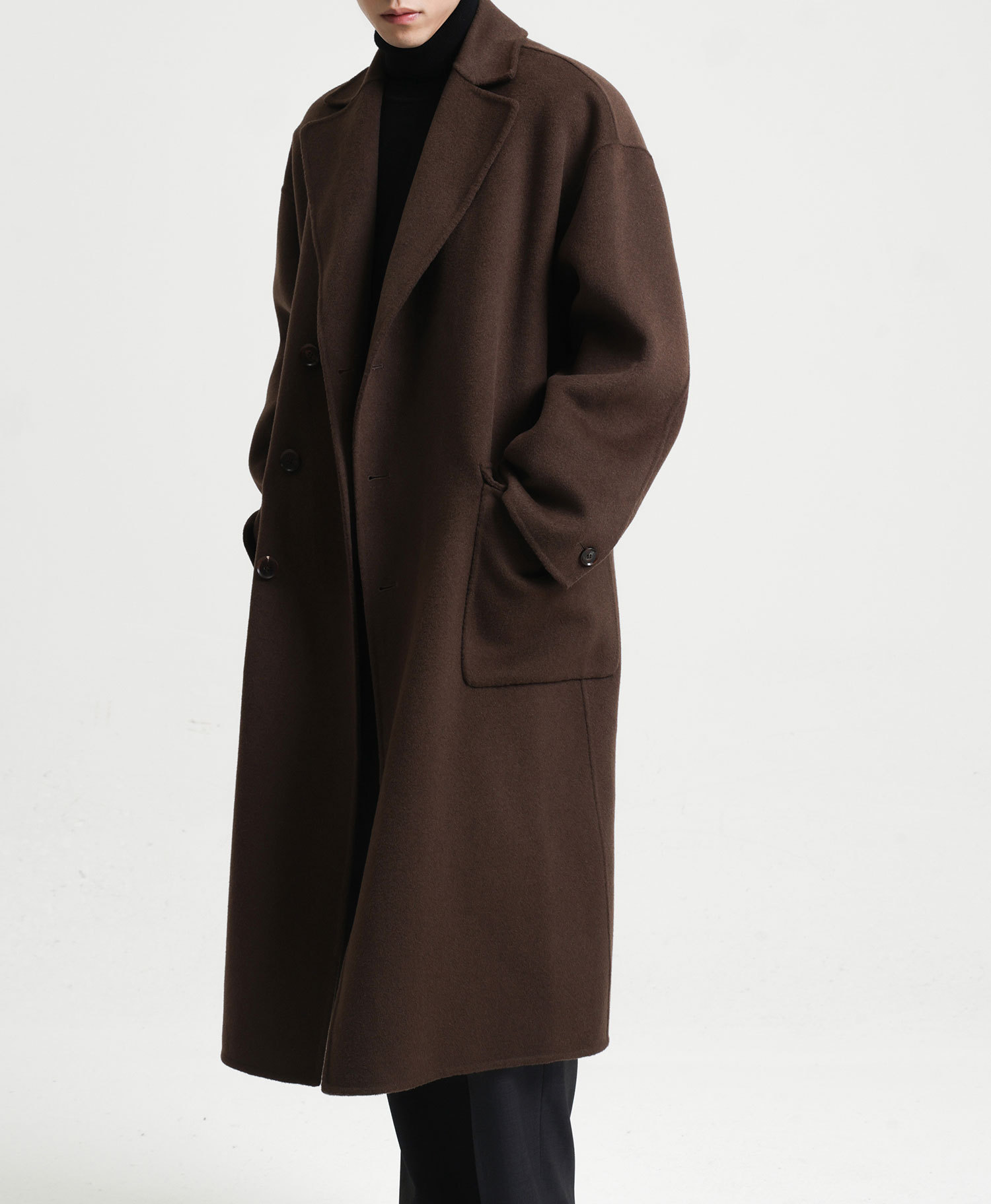 現物の新型の純色のコートの長いタイプの両面はウールのコートの男性の秋冬です。