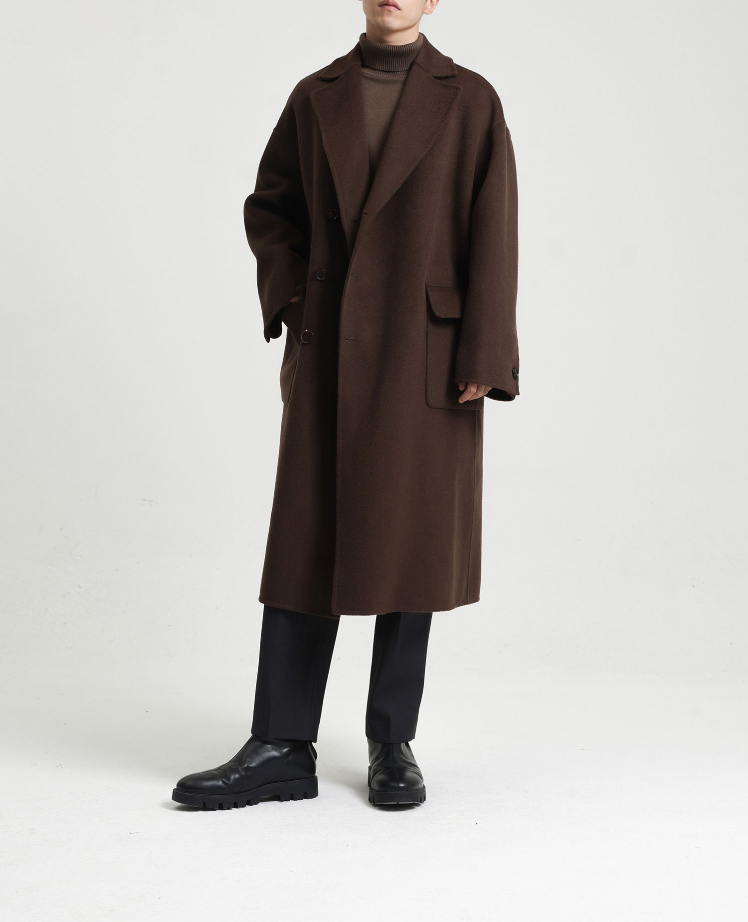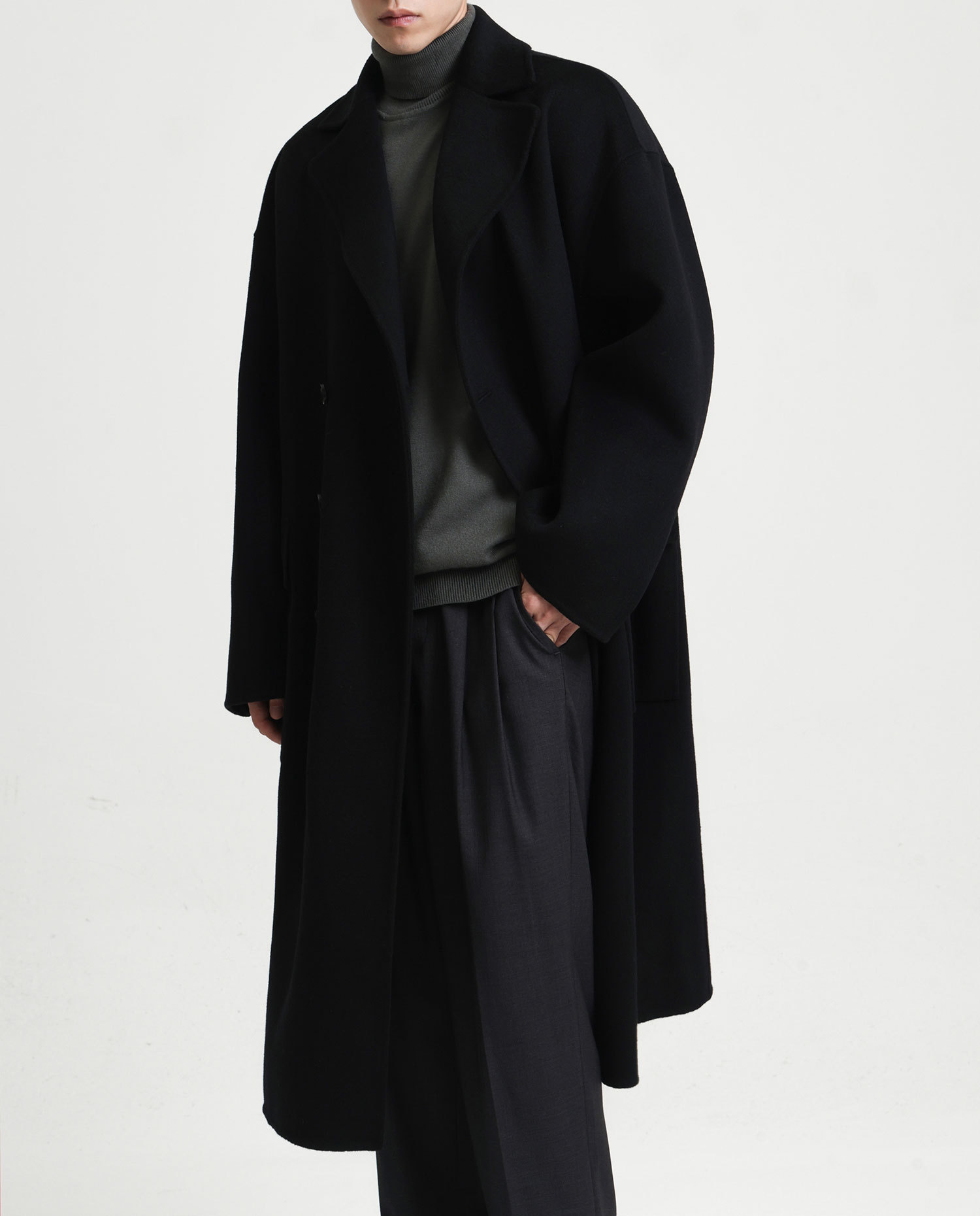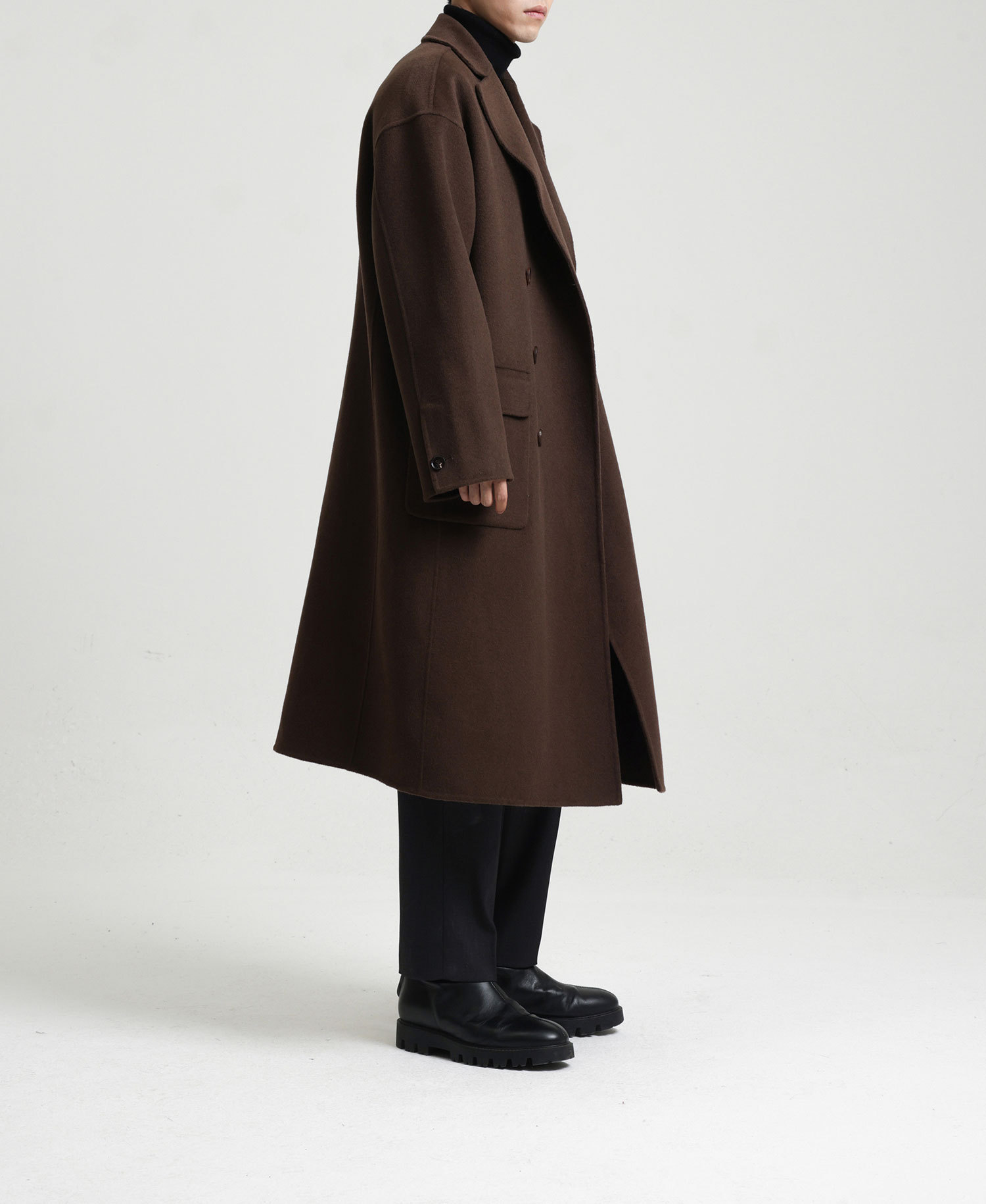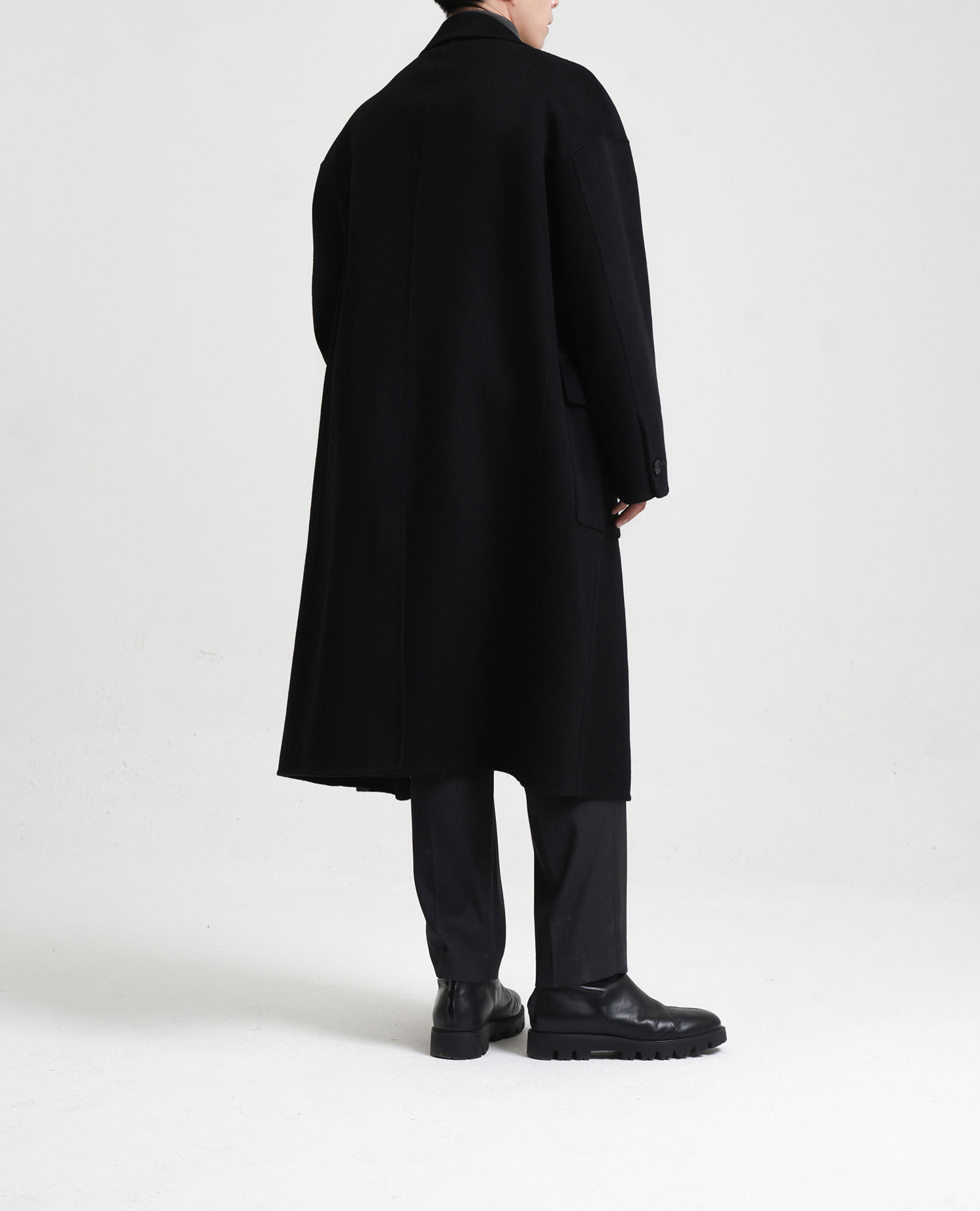 現物の新型の純色のコートの長いタイプの両面はウールのコートの男性の秋冬です。